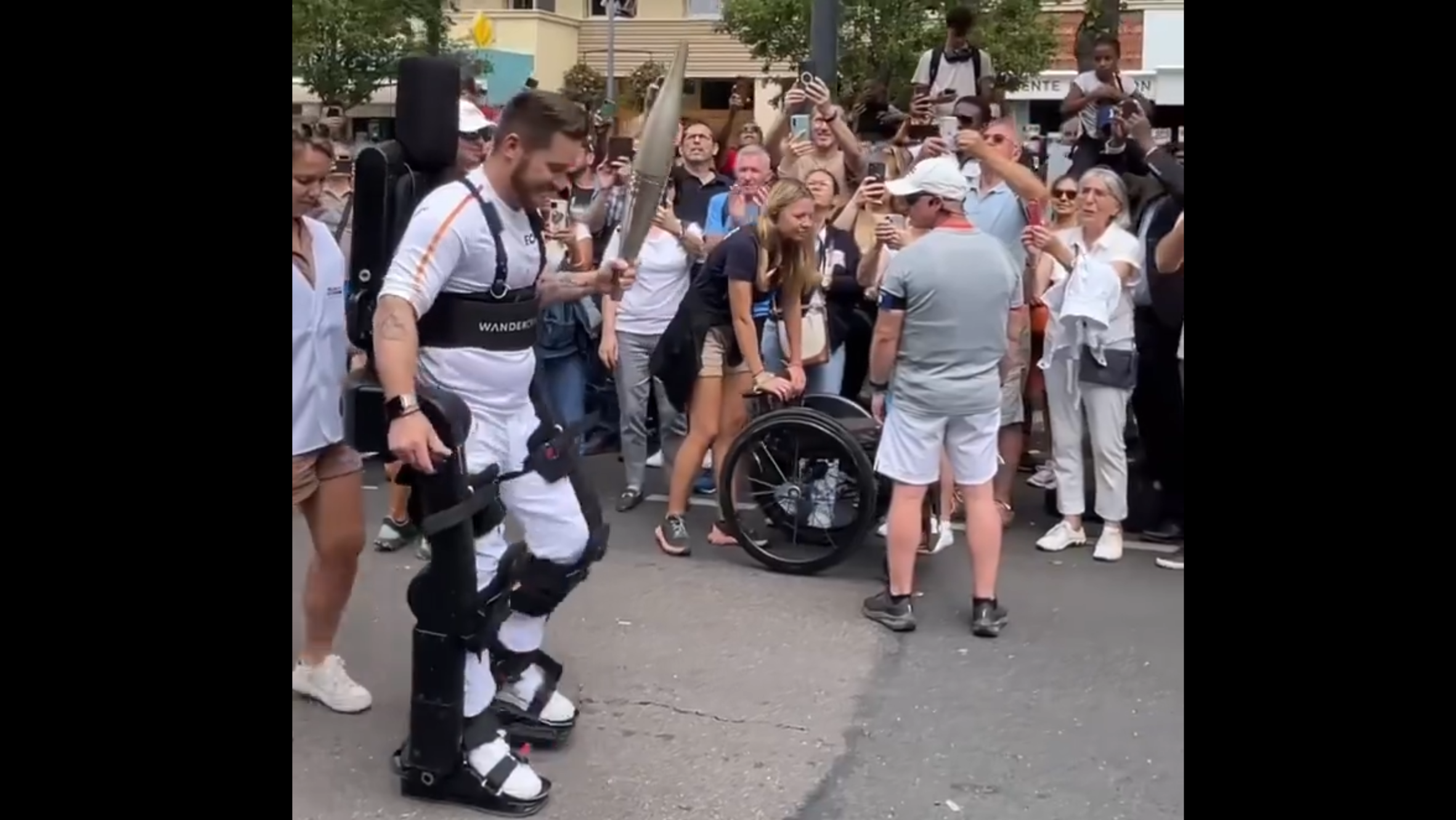 Paraplegic tennis player Kevin Piette lost the use of his legs 11 years ago in a crash, but thanks to assistive technology in the form of a bipedal robot, he's walking the Olympic Torch closer to the opening ceremonies. On Wednesday the 36-year-old wheelchair tennis singles paralympian made torchbearer history by putting one foot in front of the other. His section of the traditional torch relay took place in Poissy, northwest of Paris along the Seine river. It's pretty incredible to see the outpouring of support for Kevin and his journey to the Olympic torch. It certainly made my day a little better.