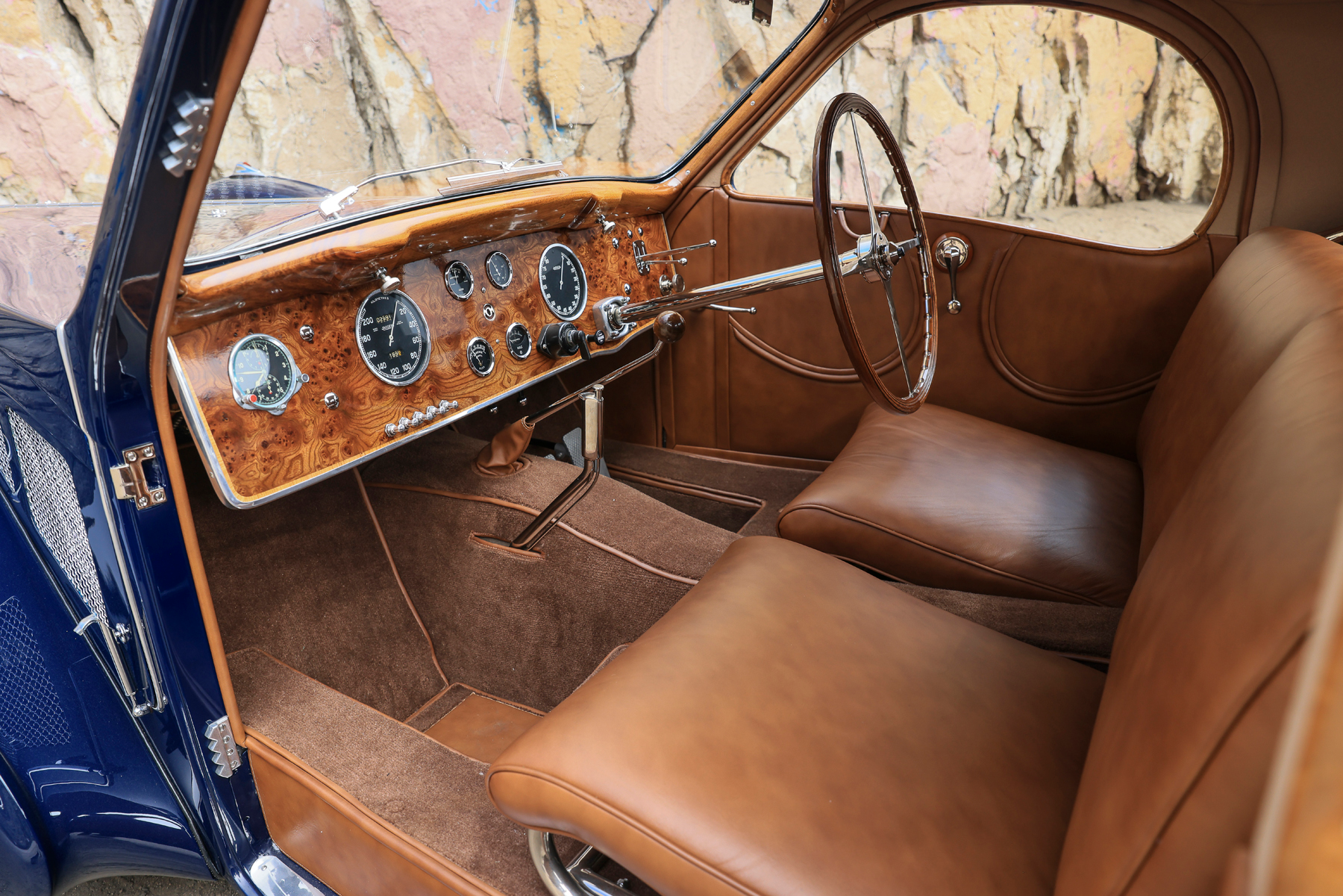 Still in freshly restored condition with numbers-matching chassis, coachwork and engine, this is likely one of the best examples of a Type 57 in the entire world. It is absolutely gorgeous, with the dark blue paintwork being nicely accented by spates of chrome trim and a lovely brown interior. The Type 57s are characterized by their lowered "surbaissé" chassis, which had the rear axle going through the frame rather than under it, offering more dramatic proportions, a lower hood and a shorter wheelbase.