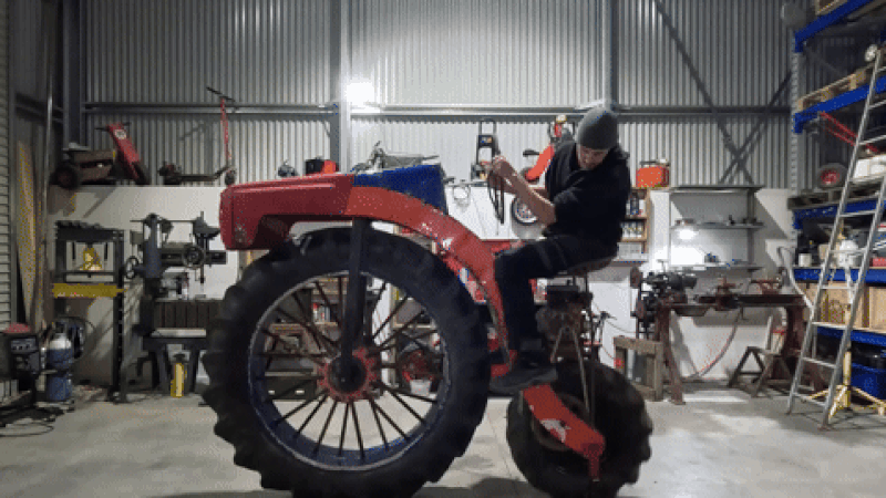 The internet is awash with budding mechanics undertaking some audacious builds. There are people like Whistlindiesel building jet-powered merry-go-rounds, another wrencher is working to restore a six-figure one-off Rolls-Royce and now someone is assembling a ridiculous motorcycle from tractor parts in their shed.