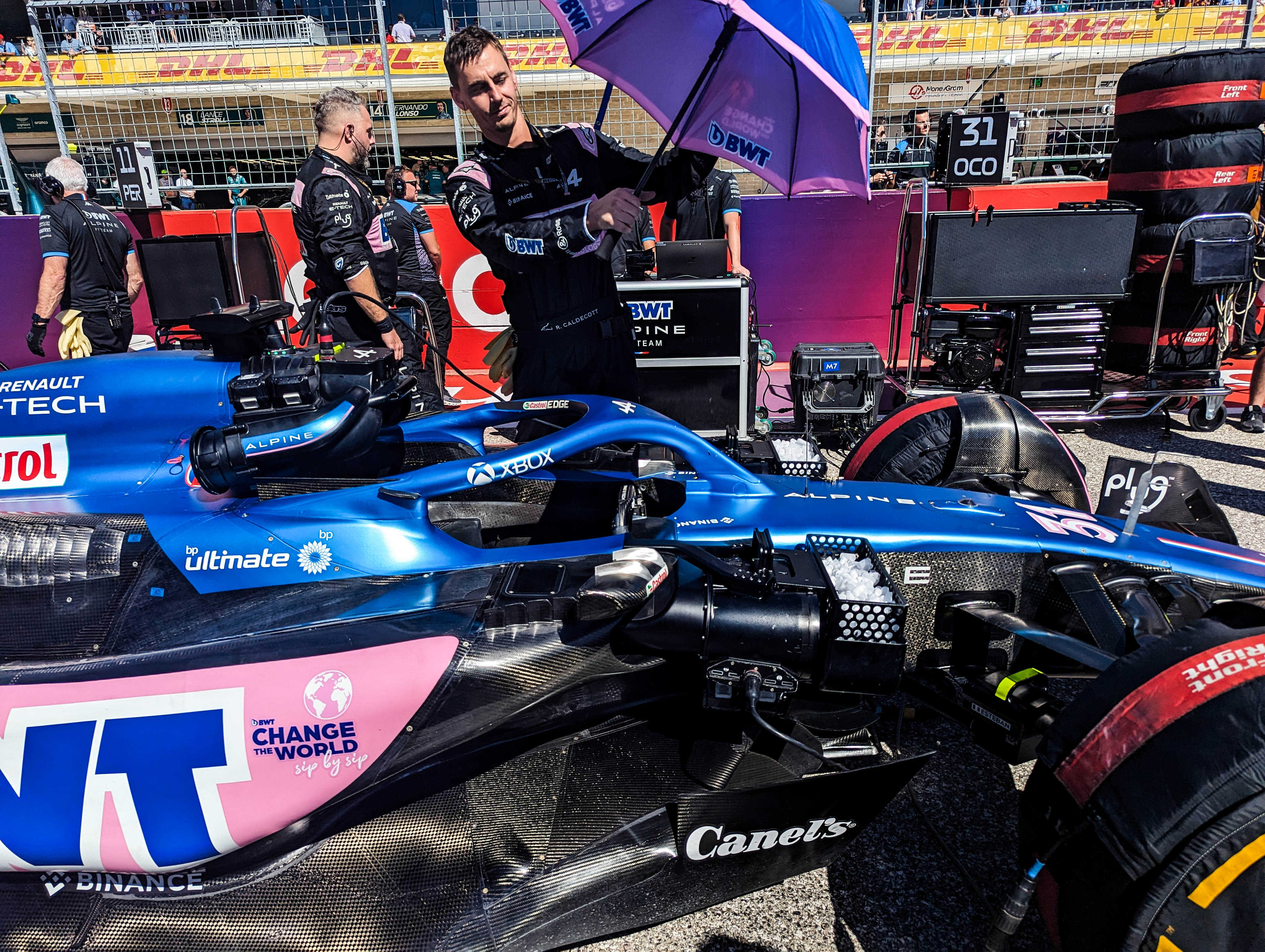 Check out the little buckets of ice attached to Esteban Ocon's Alpine. It was grossly hot in Texas, so any amount of cooling was welcome.