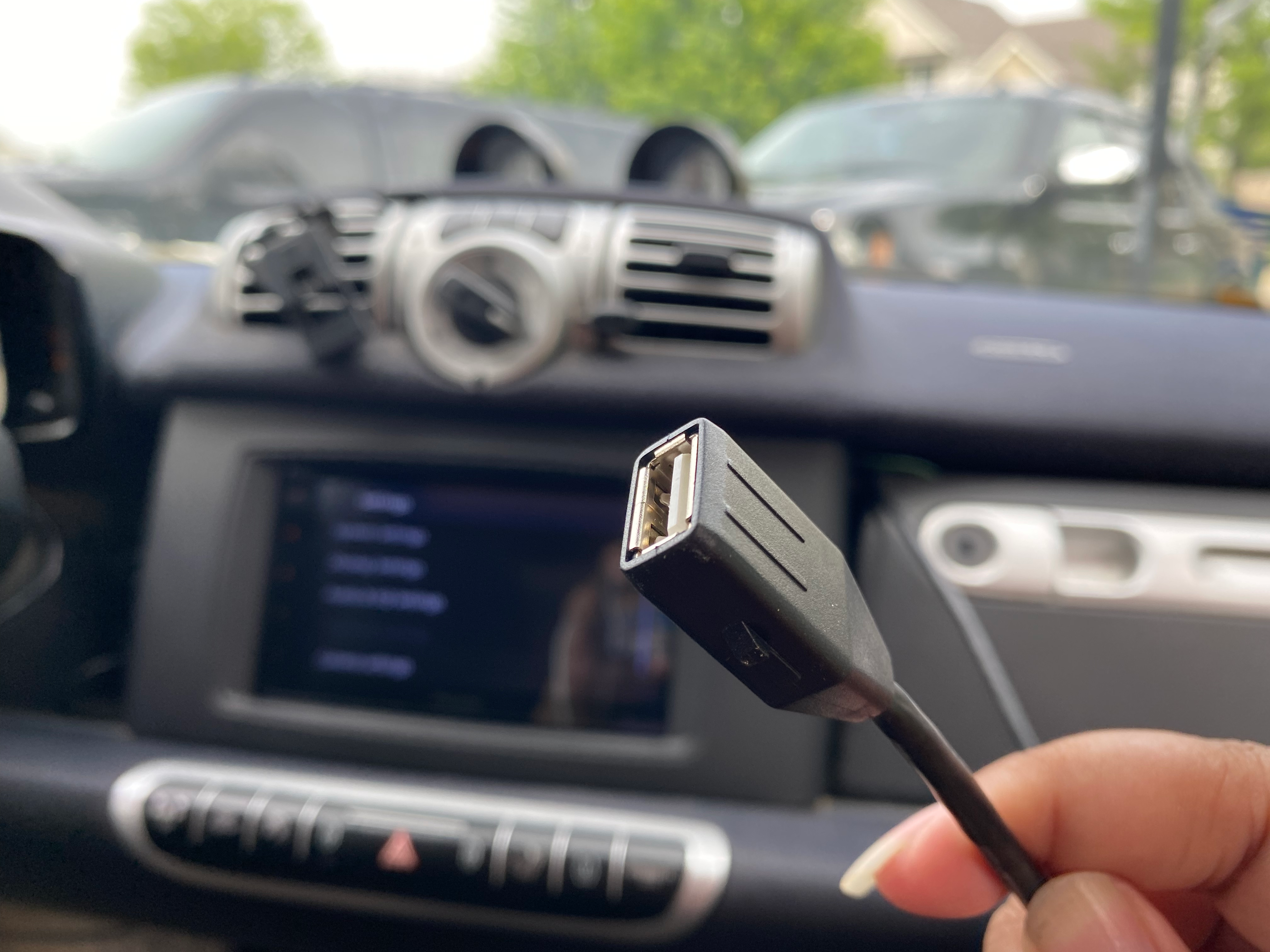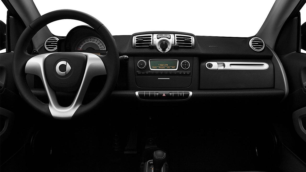 Here is what the head unit in a lower end Smart Fortwo looks like. You get an AUX jack and a basic radio, that's it. Seriously, there isn't even a CD player.