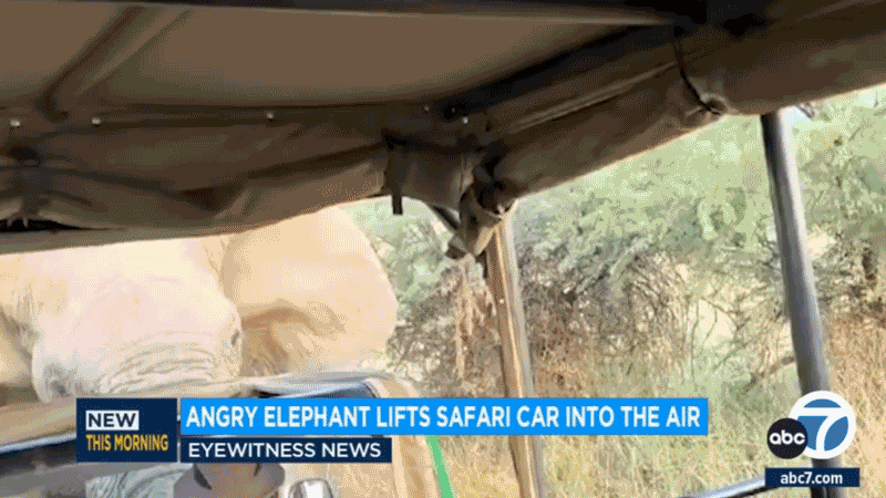 Videos taken by people on and off the truck showed the elephant lifting the front wheels of the vehicle off the ground with its tusks before letting it drop to the ground. As you may have imagined, a great deal of screaming can be heard in the video. You can see the guide backing the truck up and slamming his hands to try and convince the elephant to stop, but that very much did not work.
