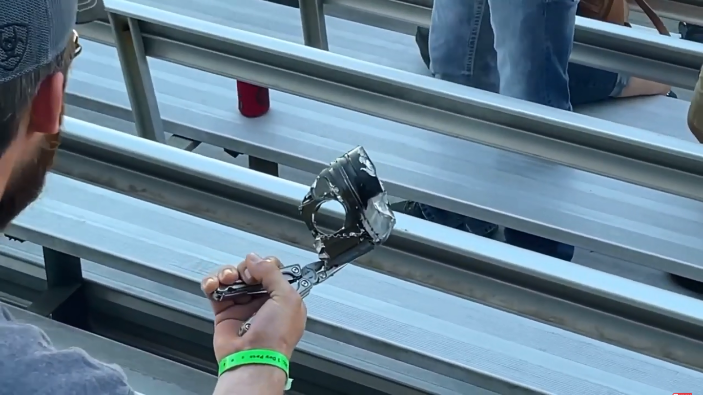 Unfortunately, the truck's engine exploded during the run and the explosion was so intense that it sent parts falling into the stands. Check out this video from Ali Chaudhry on YouTube showing both the explosion and a piston landing right next to him in the stands: