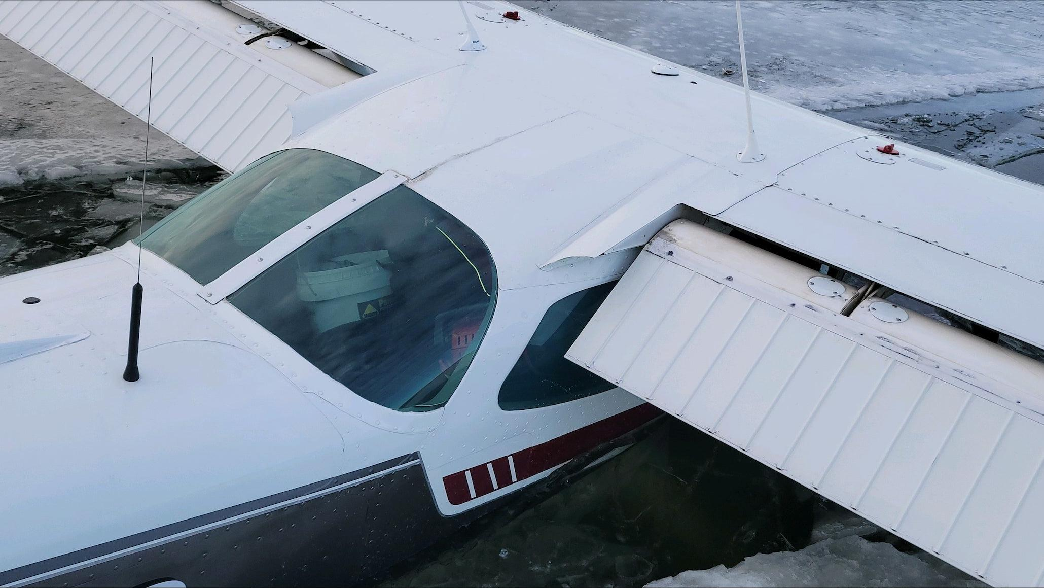 The Cessna 172 broke through just an inch or two of ice, but everyone's okay!
