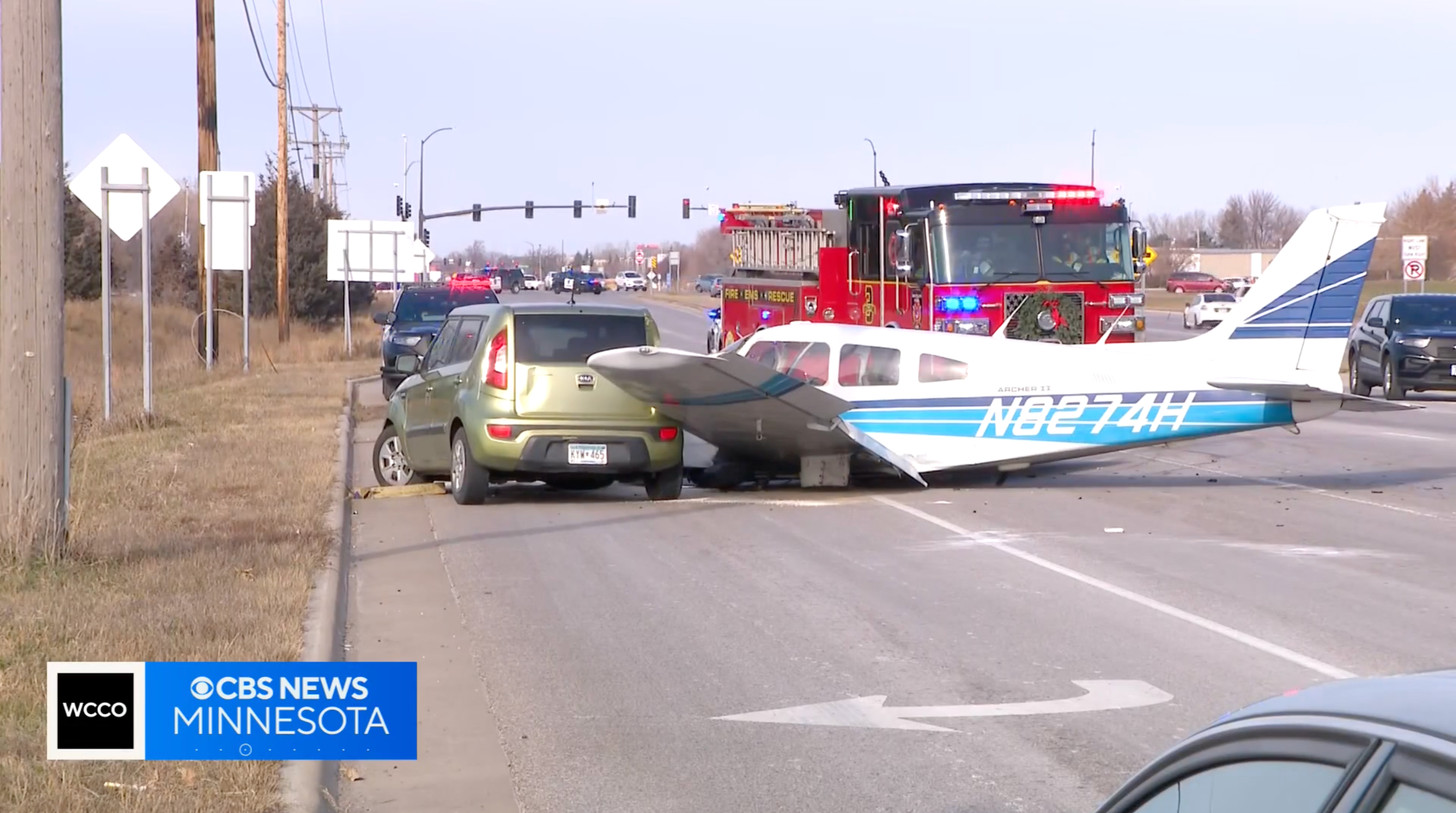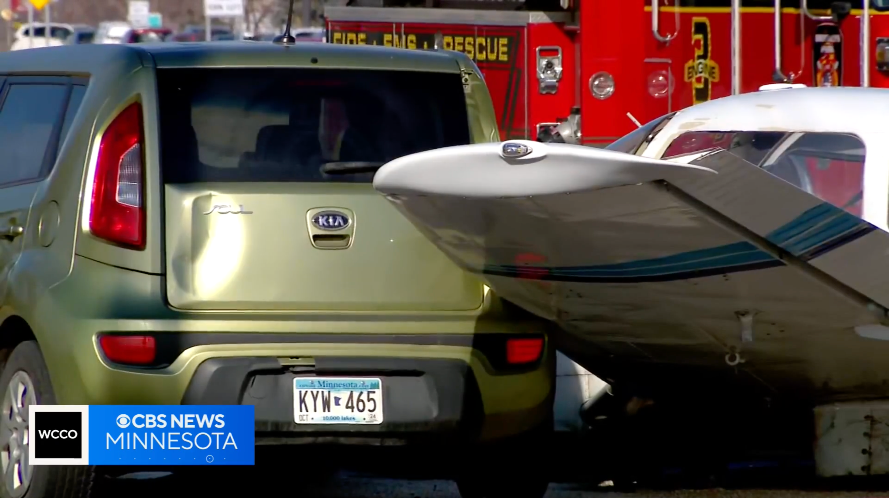 A Piper Cherokee collided with a Kia Soul before coming to a stop on a busy Minnesota highway.