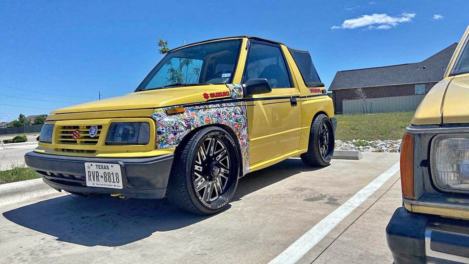 Is a Suzuki Sidekick fast? No. For a Dopest focused on speed, I admit this is an odd choice. But, allow me to give you a thought exercise here: Imagine showing up to a track day in this Sidekick. Everyone's hanging out in the paddock, checking tire pressures on their Neon SRT4s and Miatas, when you roll up in a stickerbombed Sidekick.
