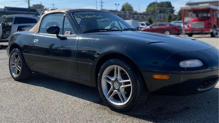 An NA Miata is not a fast car. I owned one myself, I know how they operate. This early car would have the smaller 1.6 engine, the differential likely no longer limits slip — if it ever did. This is no track weapon, no half-mile slayer, no time attack monster. But can you imagine a car that feels faster than a wrecked Miata?