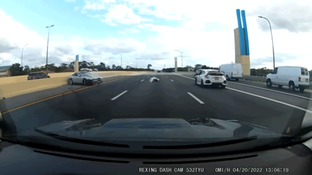 The incident occurred on Interstate 4 in Florida on Wednesday afternoon, around 5:30 pm. The footage begins with a silver Porsche 911 quickly cutting across the front of the camera car. The Porsche then fishtails on the inside shoulder and spins into the middle lane. The silver 911 gets pointed in the direction of traffic and seemingly recovers before immediately spearing off head-on into the center median.