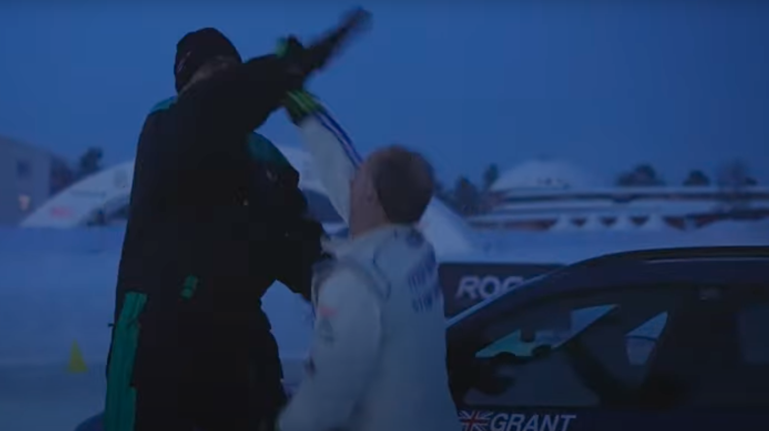 The Taycan was completely stock apart from studded winter tires, and that actually ended up causing some trouble for Grant and his team. In the middle of the video, after the car came to a sudden stop, he was told to slow down. That's because snow and ice was getting chucked up too quickly and covering one of the car's sensors – causing the Taycan to enter some sort of safety mode and stop.