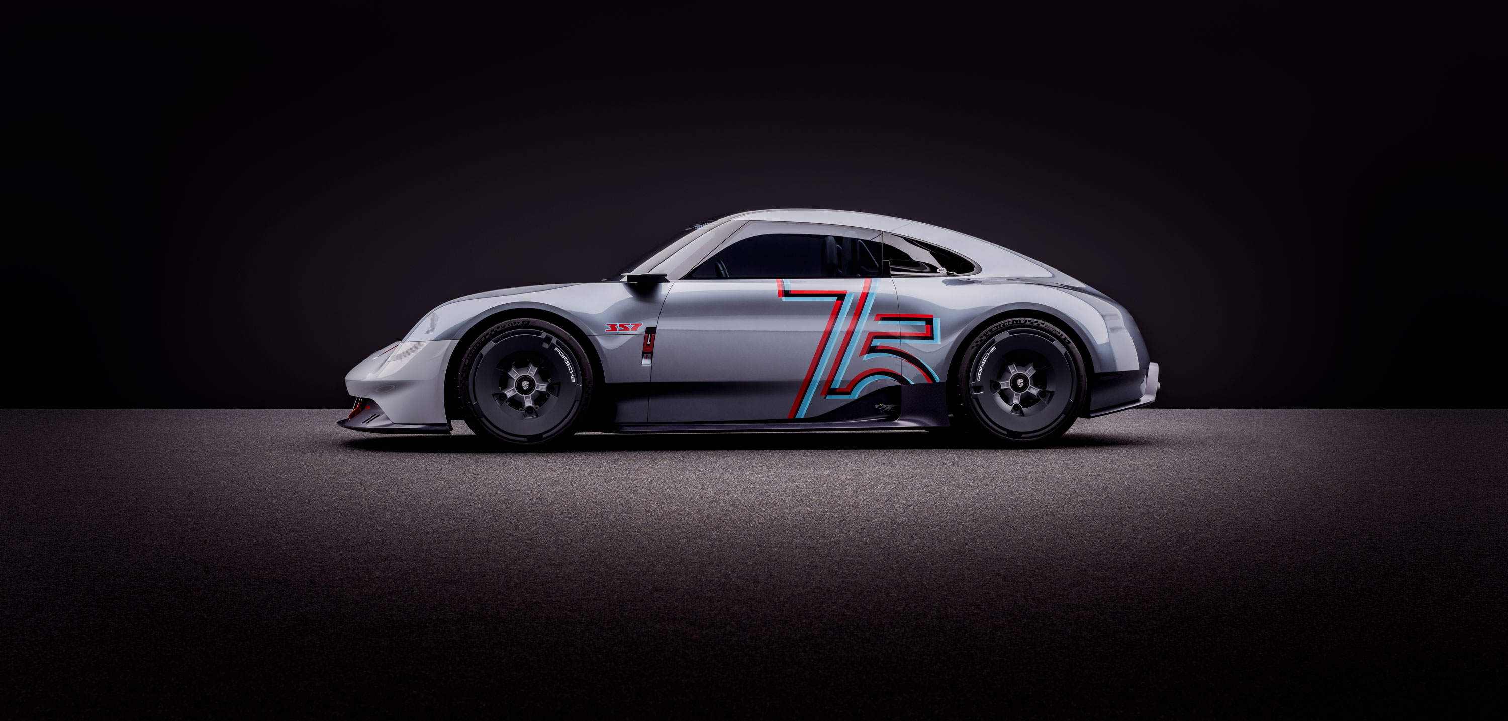 Yes, the Vision 357 is purely a concept; there is absolutely no hint at some kind of future production model. Really, this car is just a way for Porsche to celebrate its 75th anniversary of making sports cars – hence the big "75" decals on the sides. It's also a way for the company to roll out its extremely cool Renndienst electric van concept one more time, which you can see towing the Vision 357 in some of Porsche's photography.