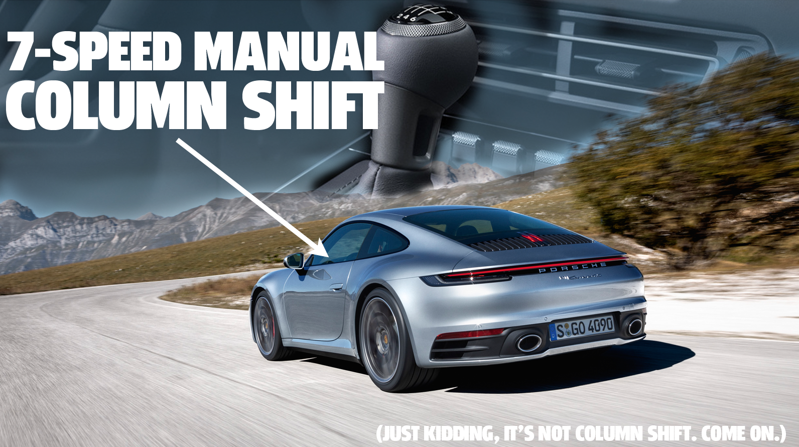 Here's a bit of good news for our more liquid members of the Self-Shifting Actualization Cult: the 2020 Porsche 911 Carrera S and 4S (in both coupé and cabrio versions) will offer the option of an honest manual transmission and a real, foot-actuated clutch pedal. You'll get to shift between a generous seven gears, which should keep you happy and busy until the sun goes supernova.