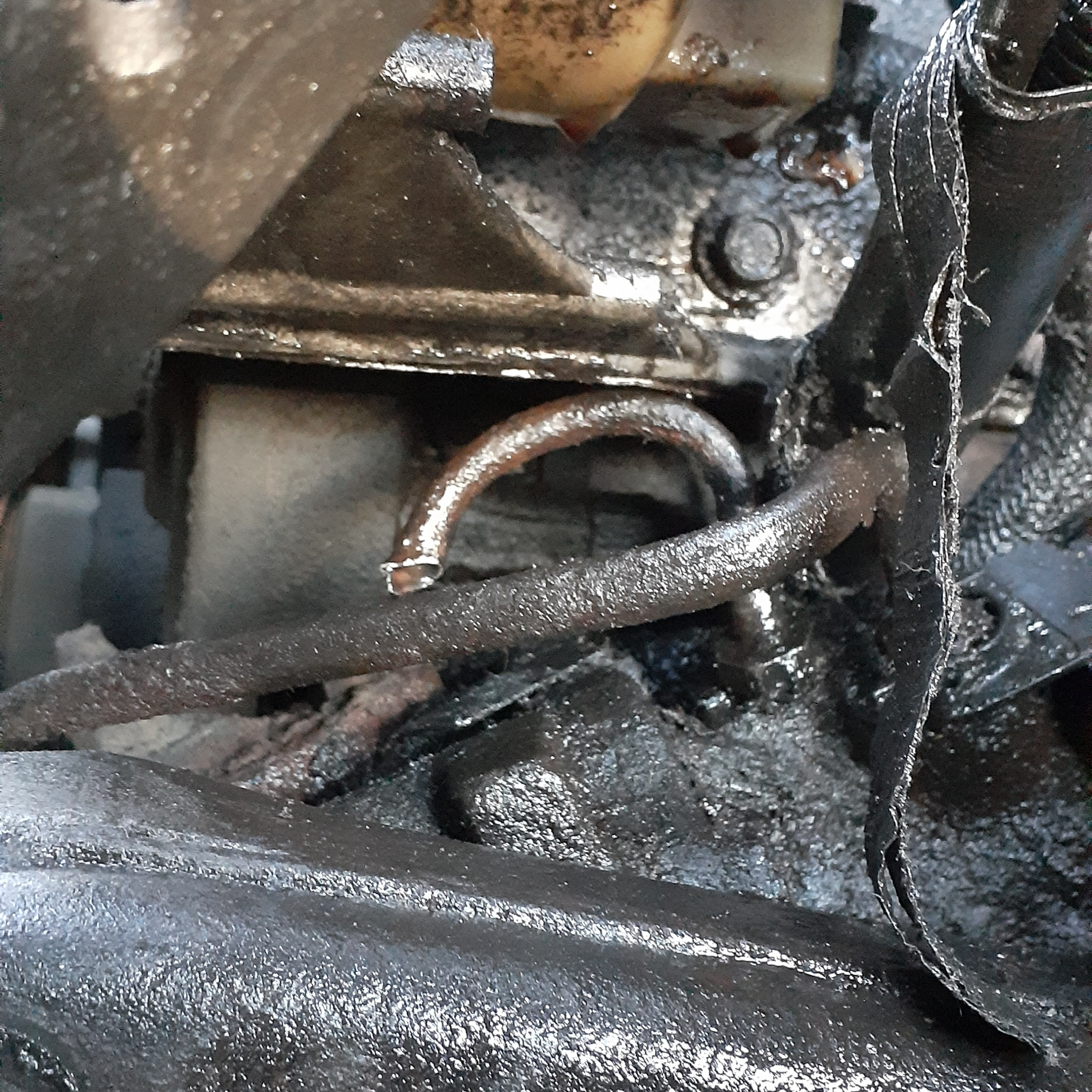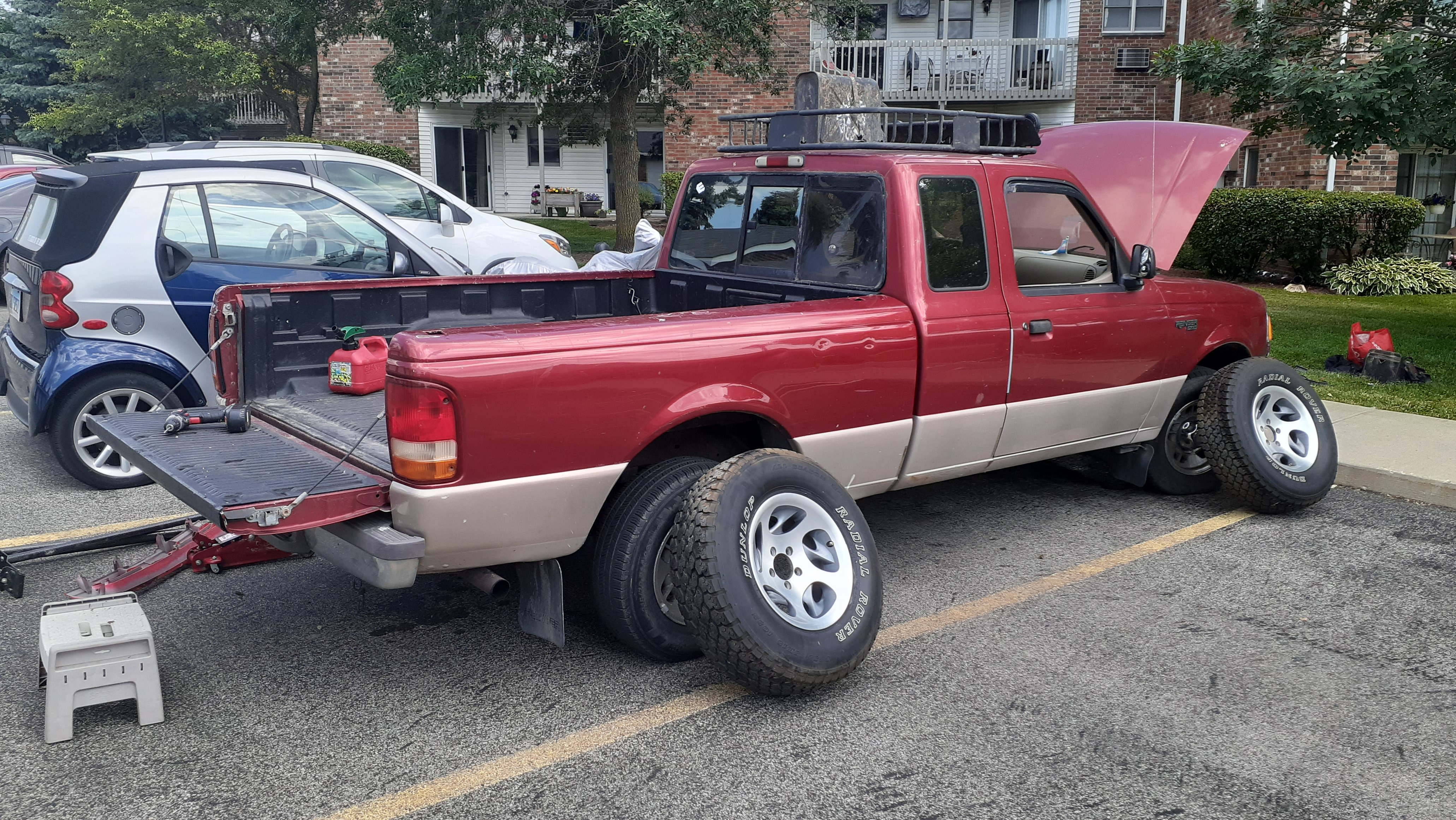 Over the summer I traded a Mercedes-Benz 240D with a dead differential for a Ford Ranger. The seller described the Ranger as having a power steering leak, but it really had a power steering geyser from the metal high-pressure line. Ideally, this is fixed by taking a line wrench to the ends of the line and loosening the nuts. In practice, everything was rusty because I'm in the Midwest and the existing line was in my way. So I didn't have enough room to break the rusty nut.