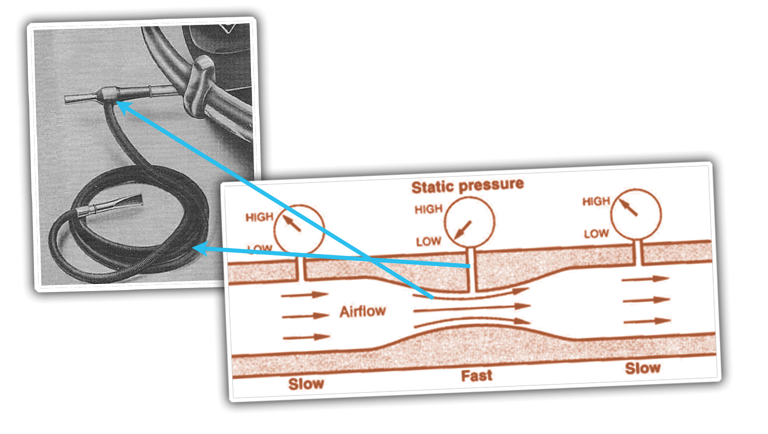 These devices worked on Bernoulli's principle, which means, basically, that if you restrict the flow of a fluid or gas (via a constriction, like a venturi in a carburetor) then the velocity of that gas will increase, but the pressure of the gas will decrease.
