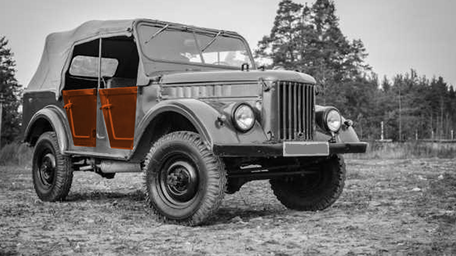 The heavily-angled door design reminds me of a Soviet GAZ 69 jeep as well: