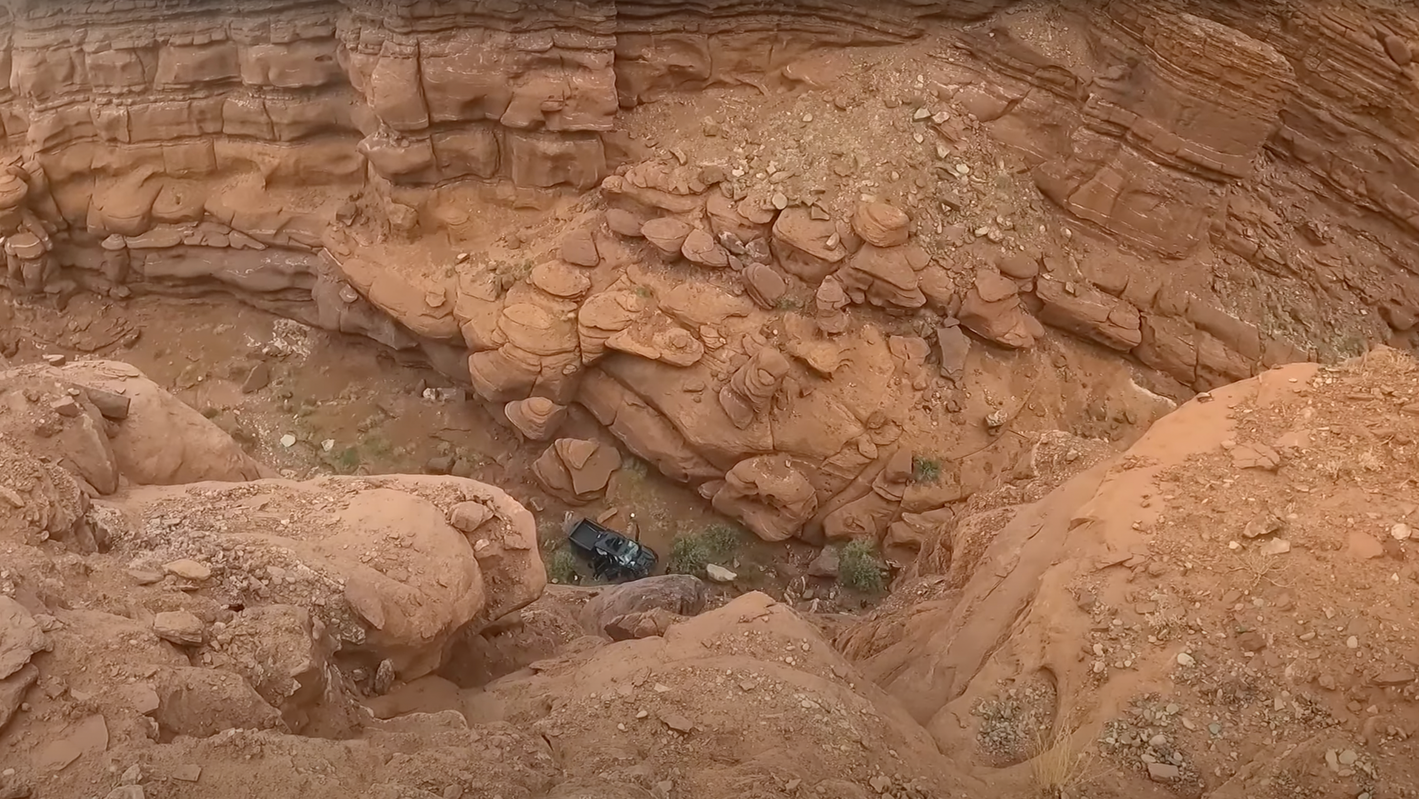 You can't just leave a mangled truck at the bottom of a cliff, though, and that's where Trail Mater comes in. Rory, the man behind the channel, operates a recovery service out in Utah and was brought in to get the truck out in as environmentally responsible a way as possible. A two-ton truck falling that far is probably going to leave behind slightly more than footprints, but it would also suck to see the recovery effort also do significant damage to the landscape.
