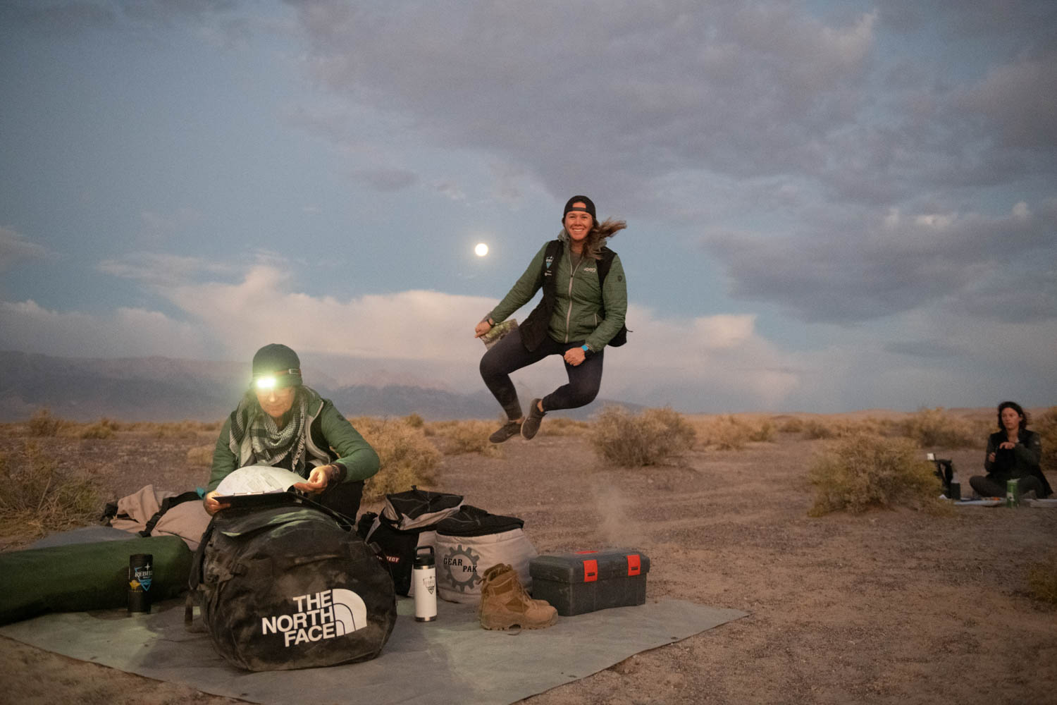 Because Fish Lake Valley Hot Springs was so remote, there was no live broadcast on Monday morning as competitors rolled out, but the evening broadcast from Base Camp 2 showed plenty of dramatic weather as the wind picked up and lightning flashed across the sky.