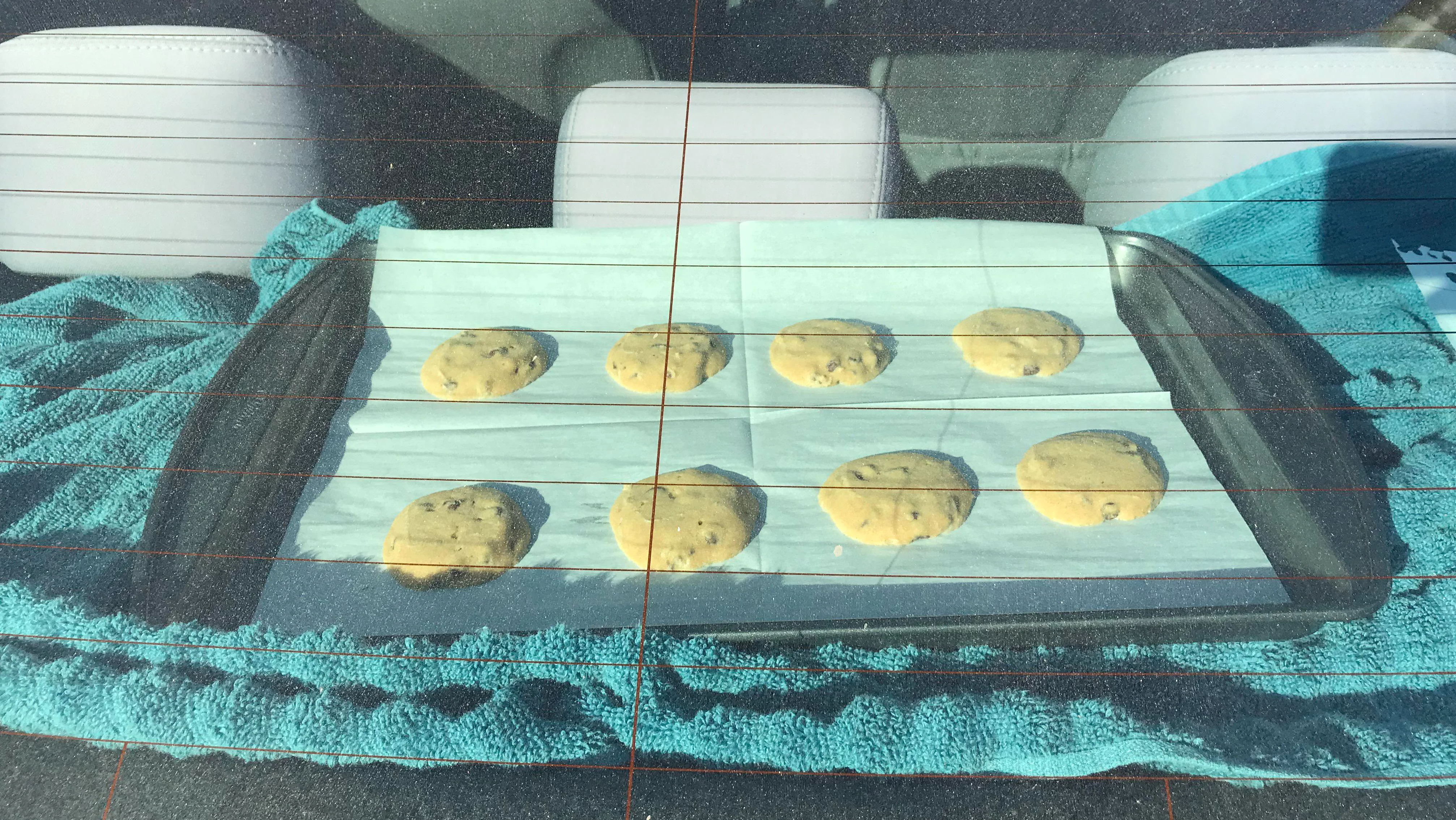 The Reddit user u/8andahalfby11 posted a series of photos showing the process and the final results of making chocolate-chip cookies under their rear window. The Phoenix, Arizona resident has weather conditions in their favor as the city has spent nearly a month with the daily high over 110 degrees Fahrenheit. A picture included showed a thermometer touching the baking tray reading 163.6 degrees. The user noted that they put a towel under the tray to prevent scorching the car's interior during the four-and-a-half-hour bake.