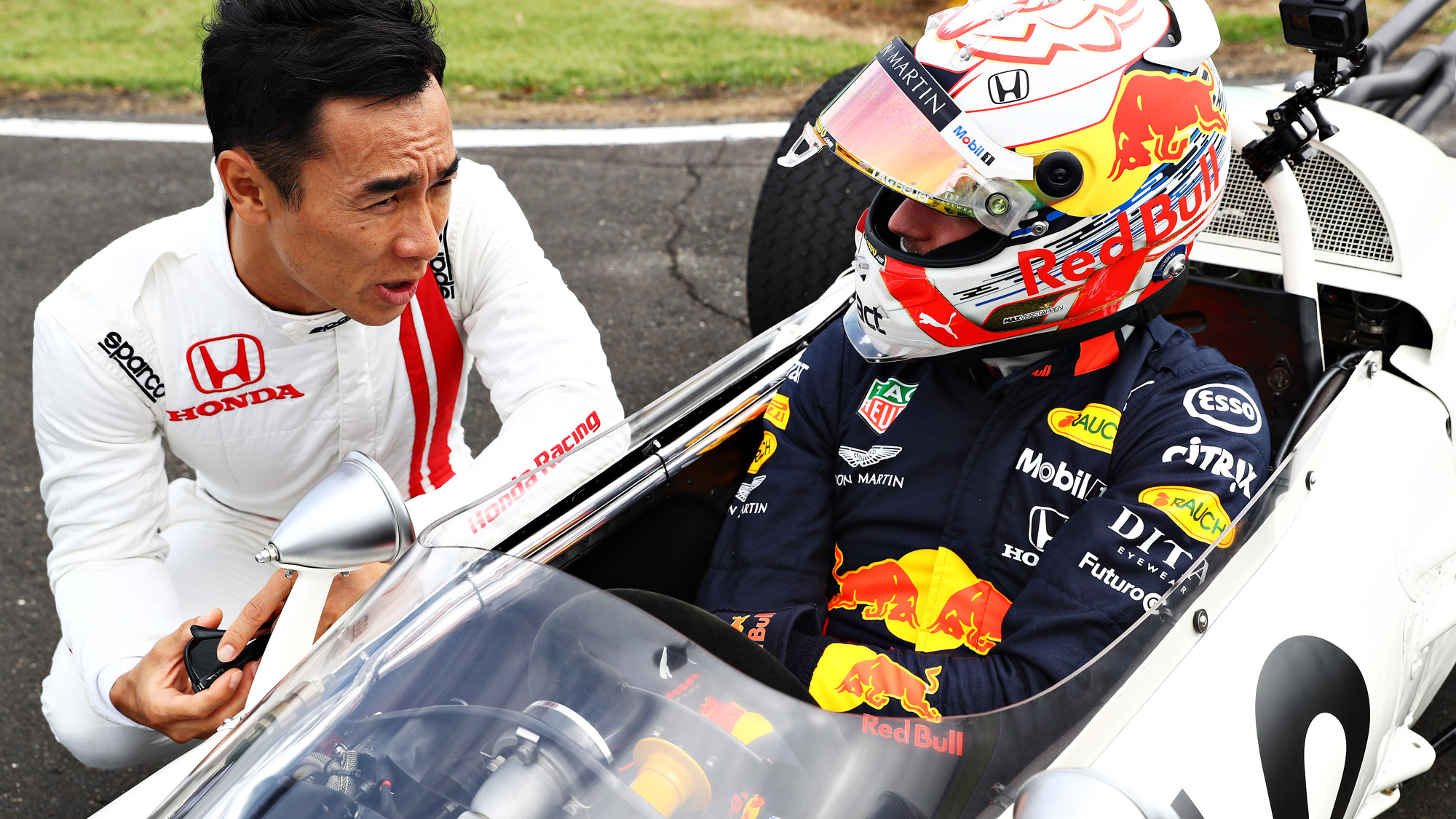 Max Verstappen and Sergio Perez's cars will run with a white-and-red color scheme echoing that of the 1965 Honda RA272, the manufacturer's first F1 chassis and the first Japanese-built car to win an F1 race. Red Bull hasn't revealed the full livery yet, but a short teaser on Twitter hinted at a Red Bull logo on the nose, in a similar position to where the "circle of the sun" was placed on the RA272.
