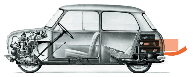 What we're looking at here is a small car, designed primarily for cities, with a hatchback. All very expected stuff. In this context, little city car hatchbacks often find themselves parallel parked, fairly tightly, and when this happens, sometimes the cars are parked so close that the tailgate doesn't have room to open, which, if you have stuff to actually get in your car, can be a huge ass-pain.