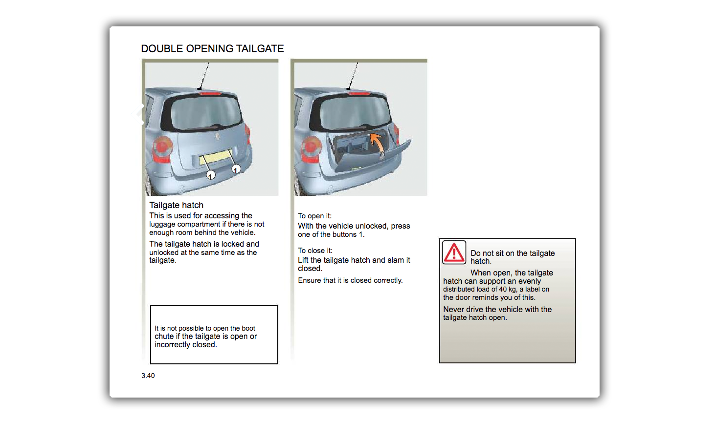 The name of this innovation was the Boot Chute, though the Modus' owner's manual gave it the less-fun name of "double opening tailgate":