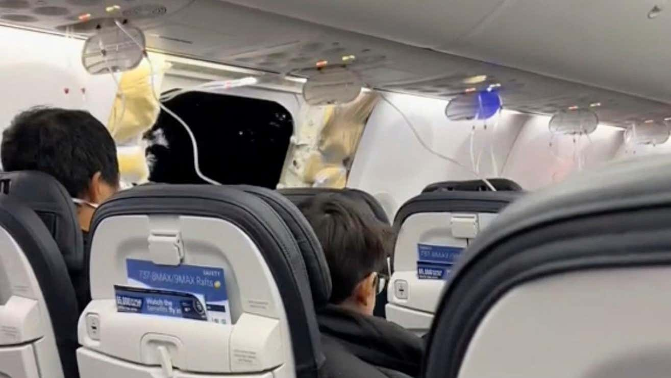 Passengers on an Alaska Airlines flight leaving Portland, Oregon endured a harrowing ordeal when a door plug blew out the side on the flight's Boeing 737 Max 9 just minutes after takeoff. The massive hole in the fuselage's side at 16,000 feet caused the cabin to depressurize, the lights to flicker and oxygen masks to drop from the ceiling. Luckily, no one was sitting directly next to the plug as the back of an unoccupied seat was ripped out of the aircraft.