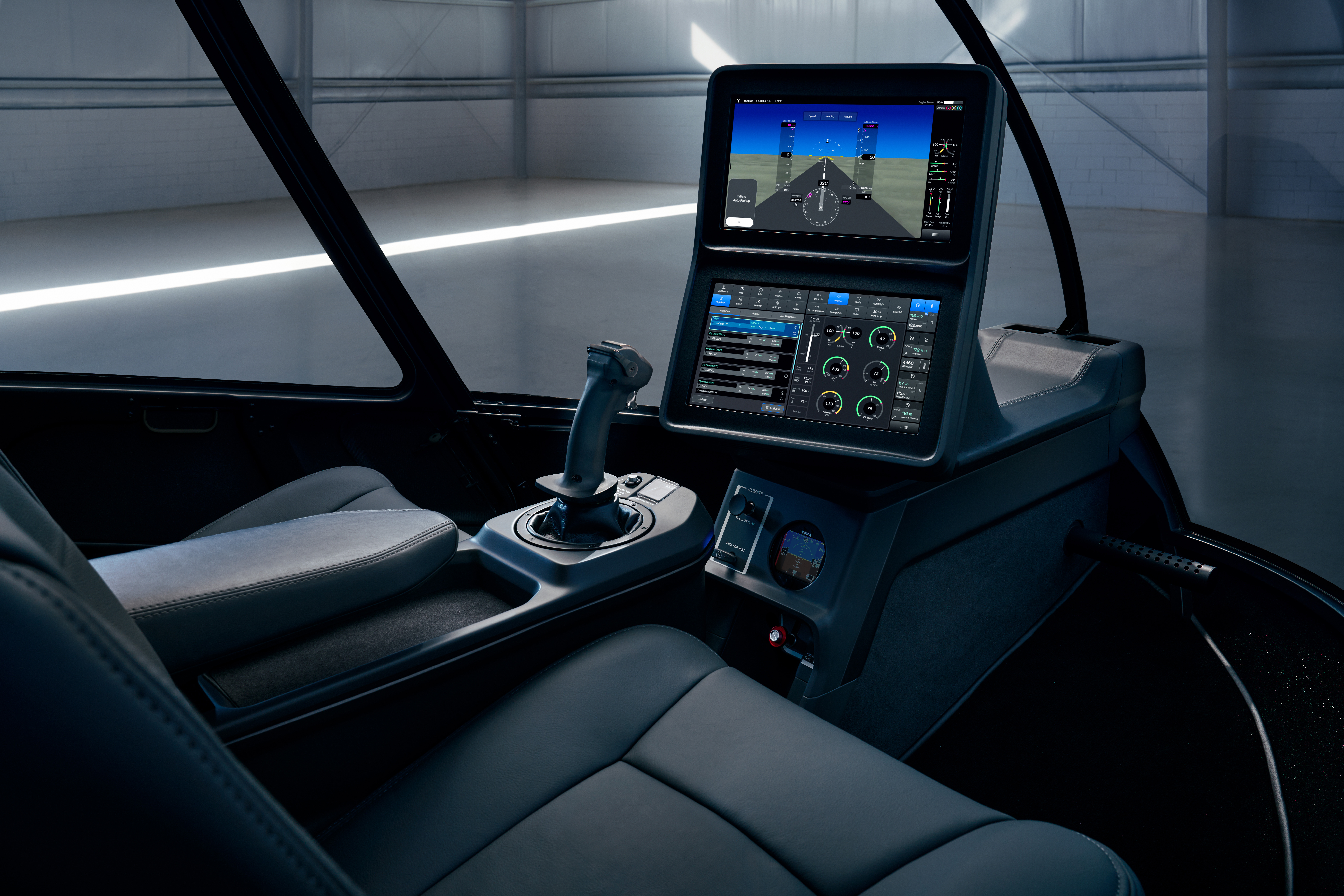 The innovative helicopter is underpinned by SkyOS, a proprietary operating system running the highly-automated controls. The operating system translates the pilot's inputs, along with environmental conditions and flight parameters, into four-axis flight. I cannot overstate how ambitious it is to distill the traditional cyclic, collective, pedals and throttle down to a joystick and two touchscreens.