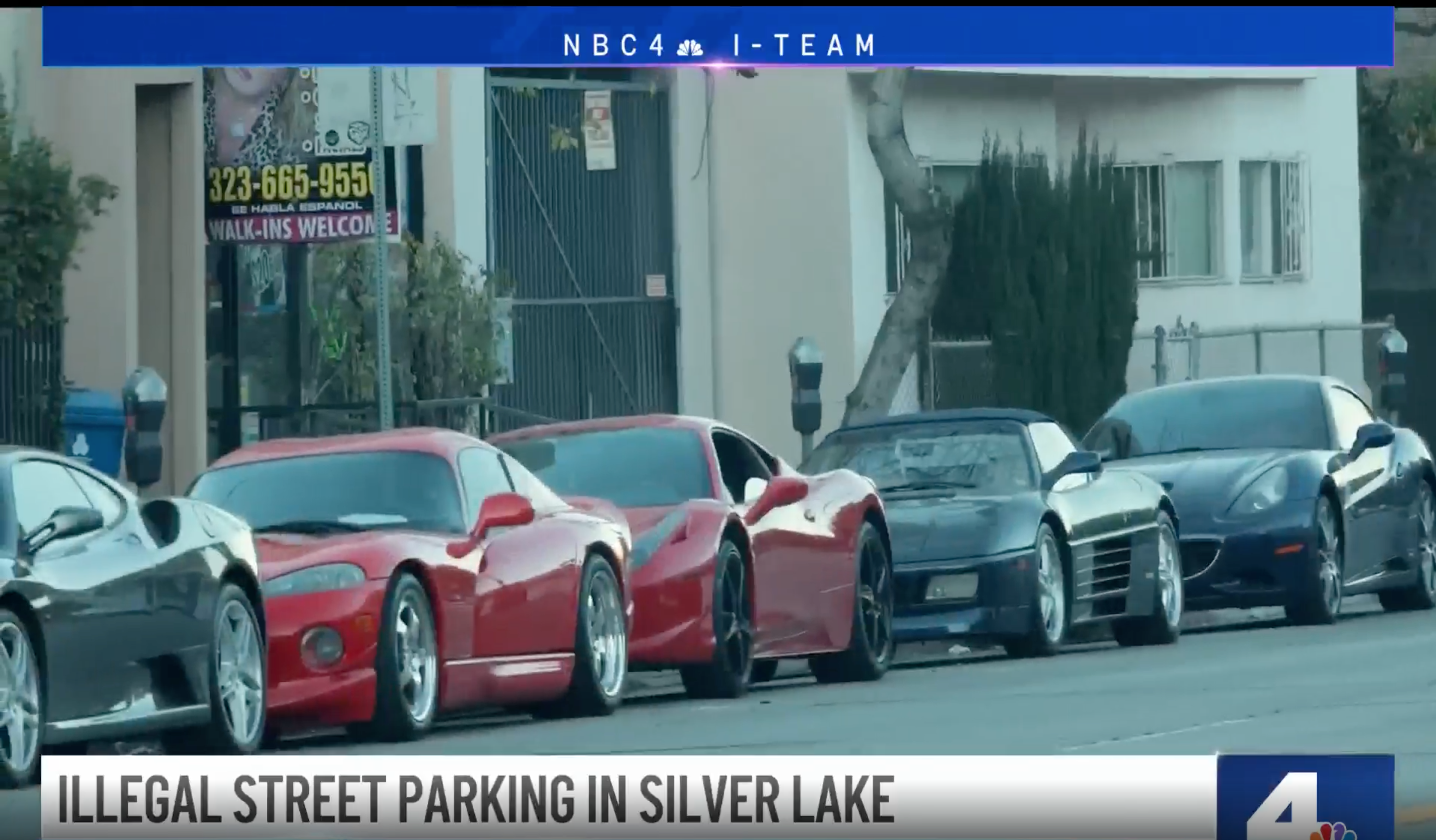 After receiving Behrend's email, the I-Team decided to watch his Silver Lake neighborhood, starting before dawn. And under the cover of darkness, we spotted workers from Hi-Tech Automotive—a shop that repairs high-end cars—starting to park customers' fancy vehicles in street spots meant for residents and monopolizing all the meters on some blocks.