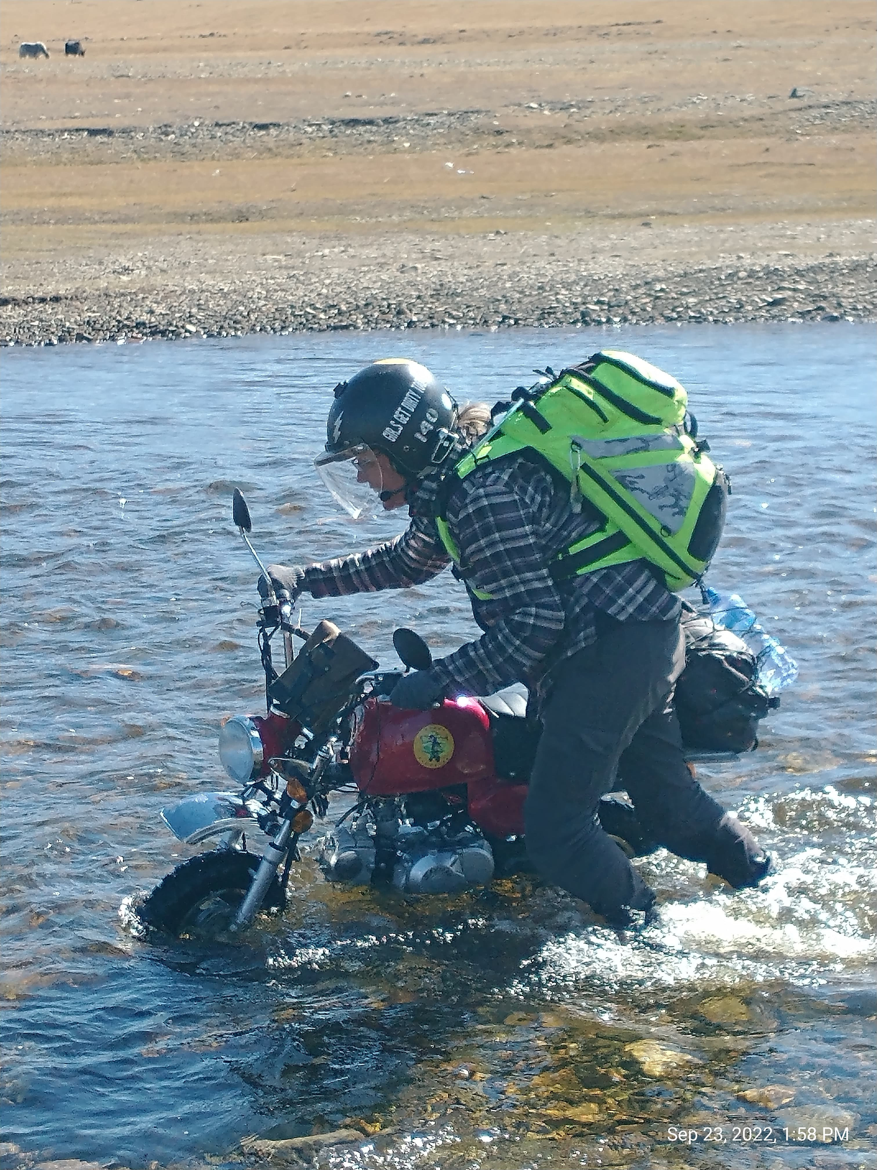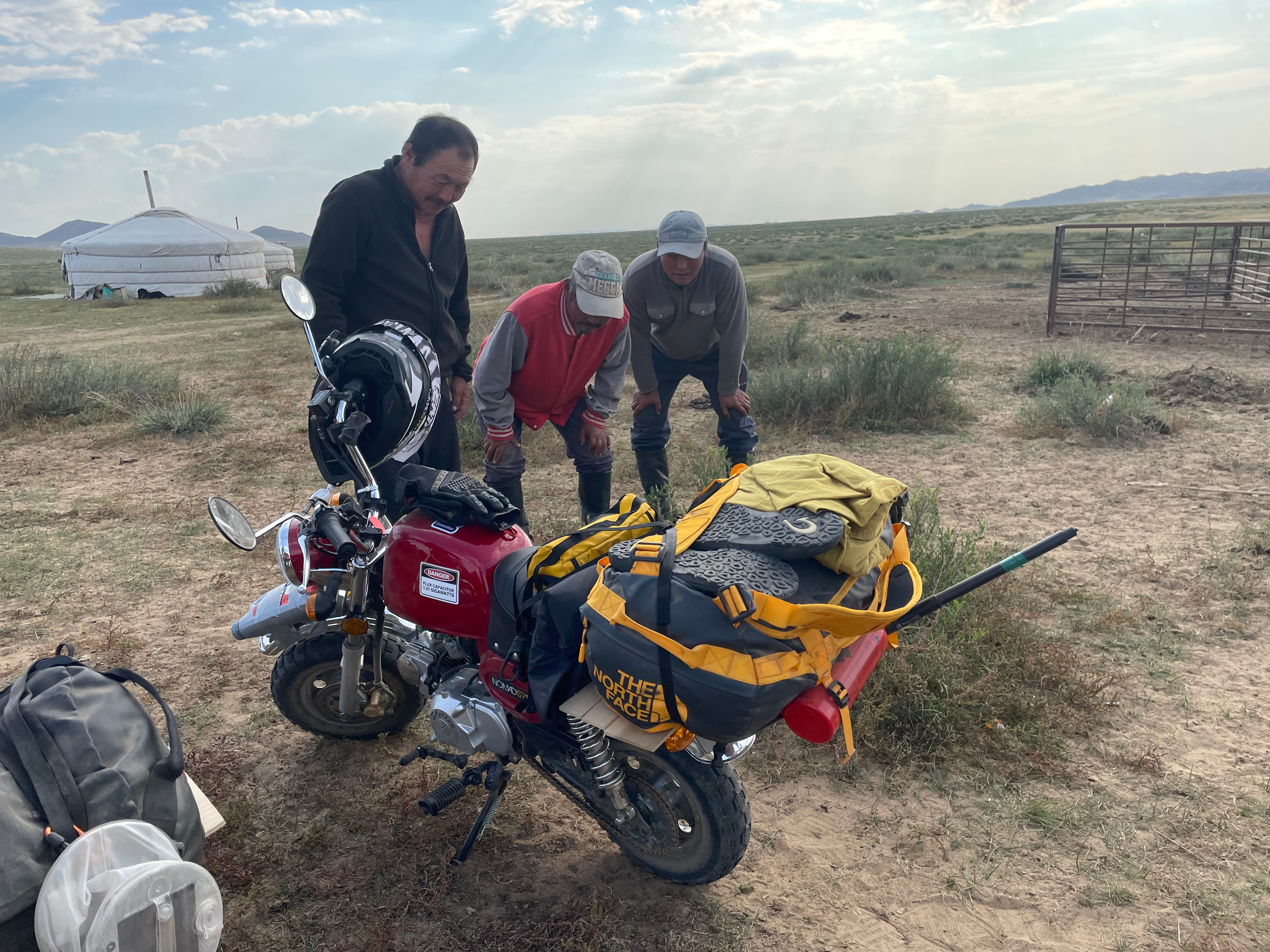 How so? Well, she got lost — a lot. She ran out of gas. She broke the clutch handle on her bike and was stuck in 4th gear for a few days. Luckily she's a petite woman and although the bike was sluggish, it could still take off. She was once saved by a Mongolian family who drove 150 km to get her a new puncture repair kit when she got a flat and realized her kit was garbage. At one point, she got three flats in one day. Still, through it all, she persevered and solved all the problems Mongolia — and a crap monkey bike — threw at her.
