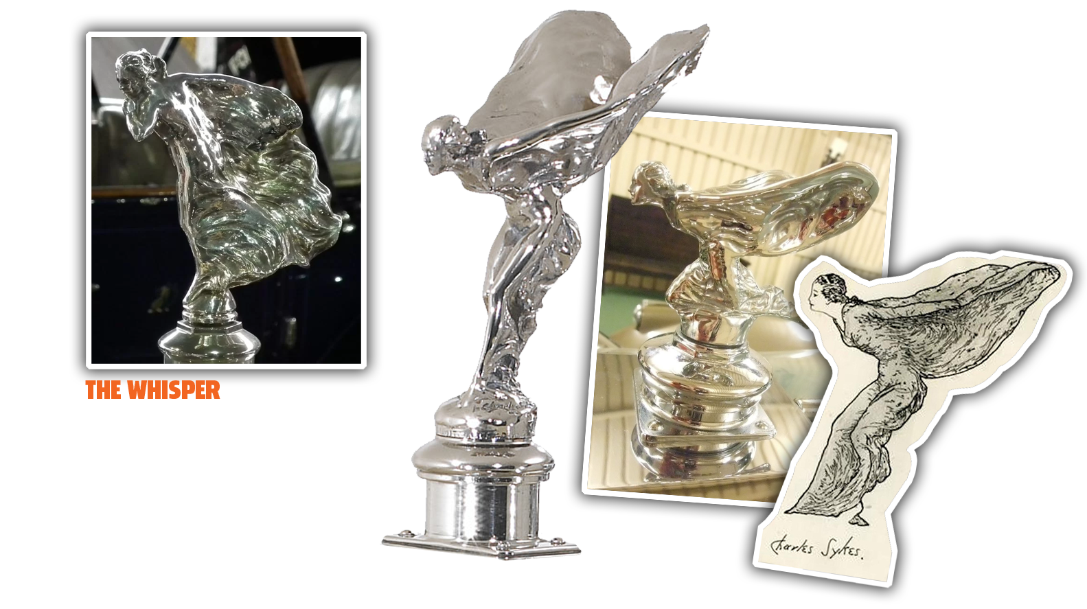 The statuette, which is based on a woman named Eleanor Velasco Thornton and sculpted by Charles Sykes. It originally took the form of a sculpture known as The Whisper that hinted at an affair between the actress Thornton and the Baron who commissioned the sculpture/hood ornament for his 1925 Rolls-Royce Phantom, the succinctly-named John Walter Edward Douglas-Scott-Montagu, 2nd Baron Montagu of Beaulieu.