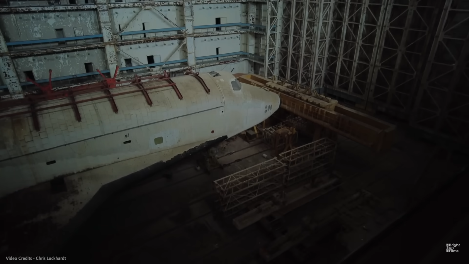 Two Russian Buran space planes sit abandoned as a reminder of the Soviet Space Program and the race to govern space