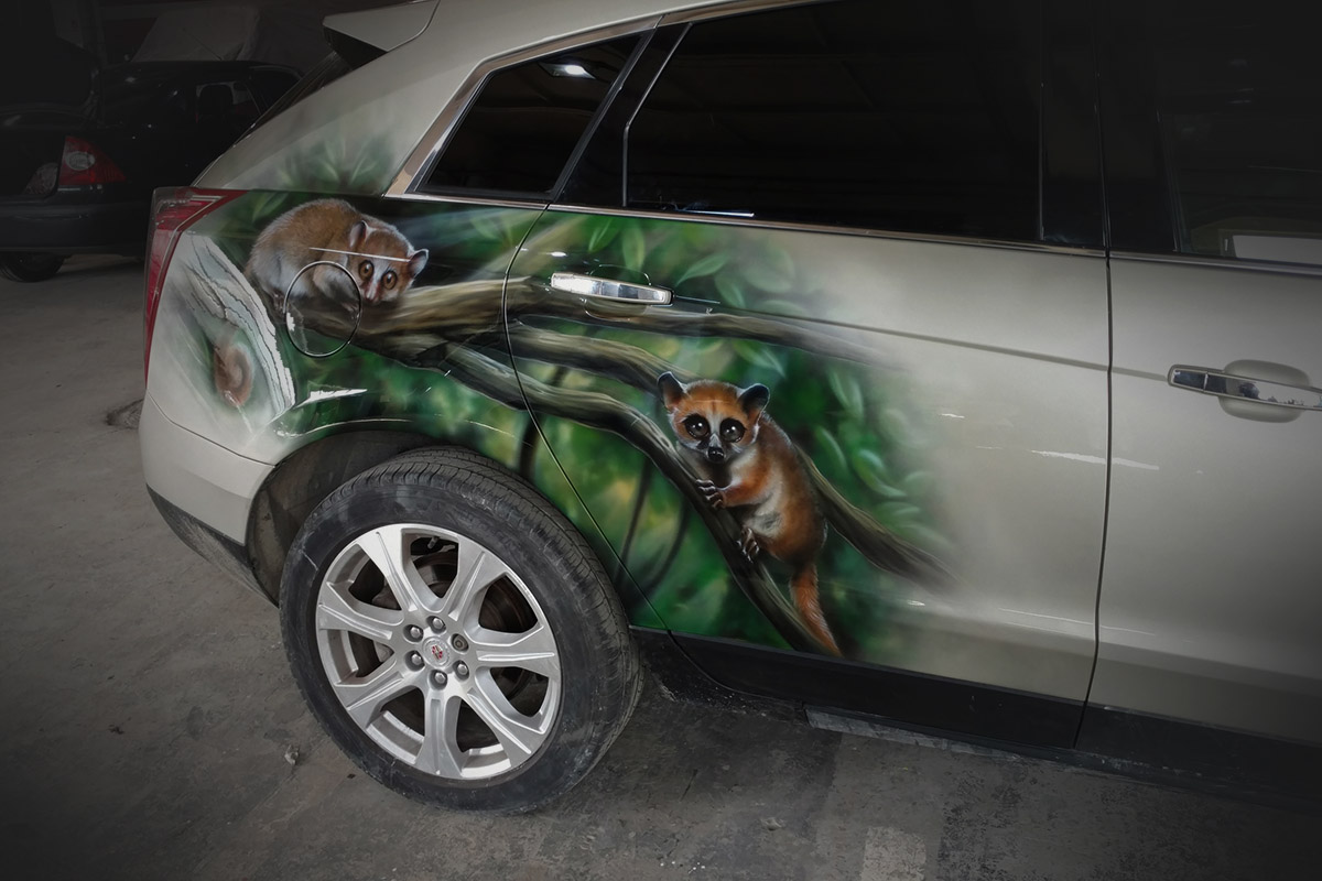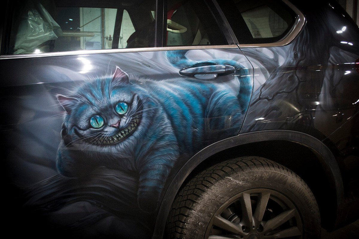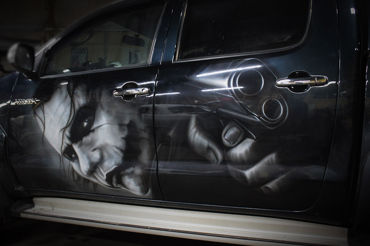 "I have customers who come to me with no idea what to airbrush onto their cars," Marina admits. "They'll say: 'I definitely don't want animals.' So then we offer a landscape. Then a movie theme. And usually [they] end up choosing something neutral." As crazy as this might sound, these are types of clients who airbrush their cars for explicitly practical reasons.