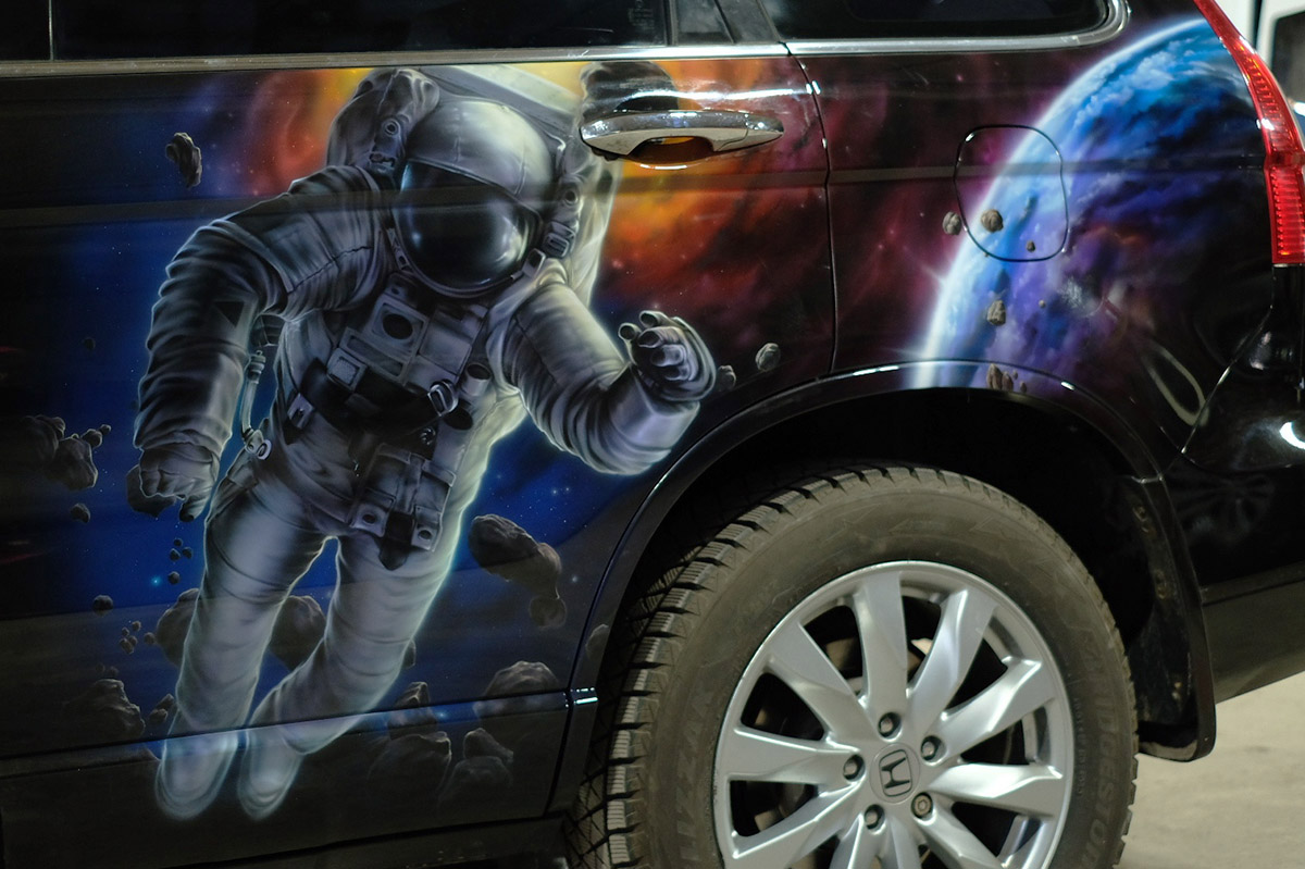 "Aerography is not cheap, to say the least," Marina said. "Last fall we did an entire Dodge Ram, covering all the panels except for the roof, and it cost the customer nearly 300,000 rubles (about $4,000)."
