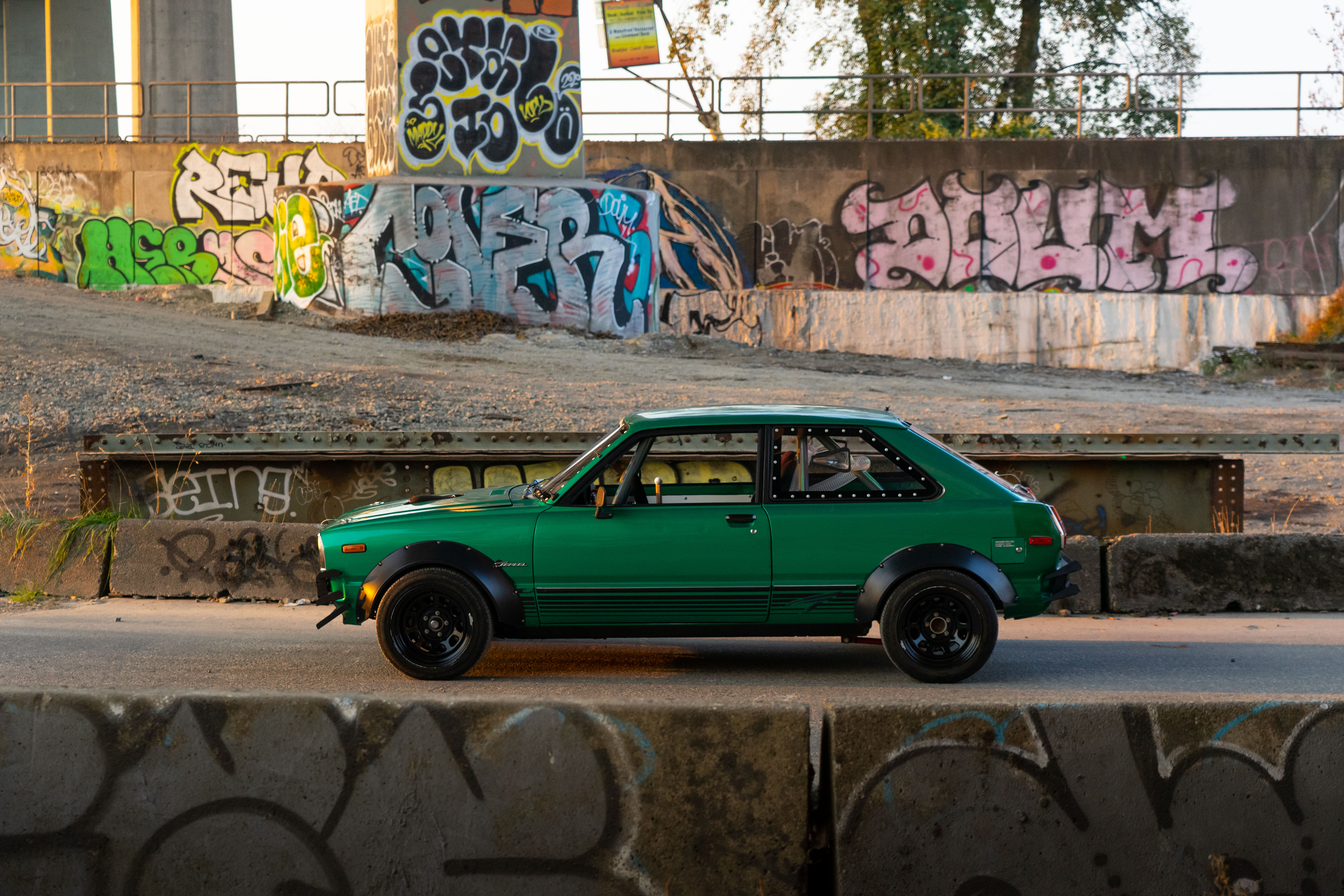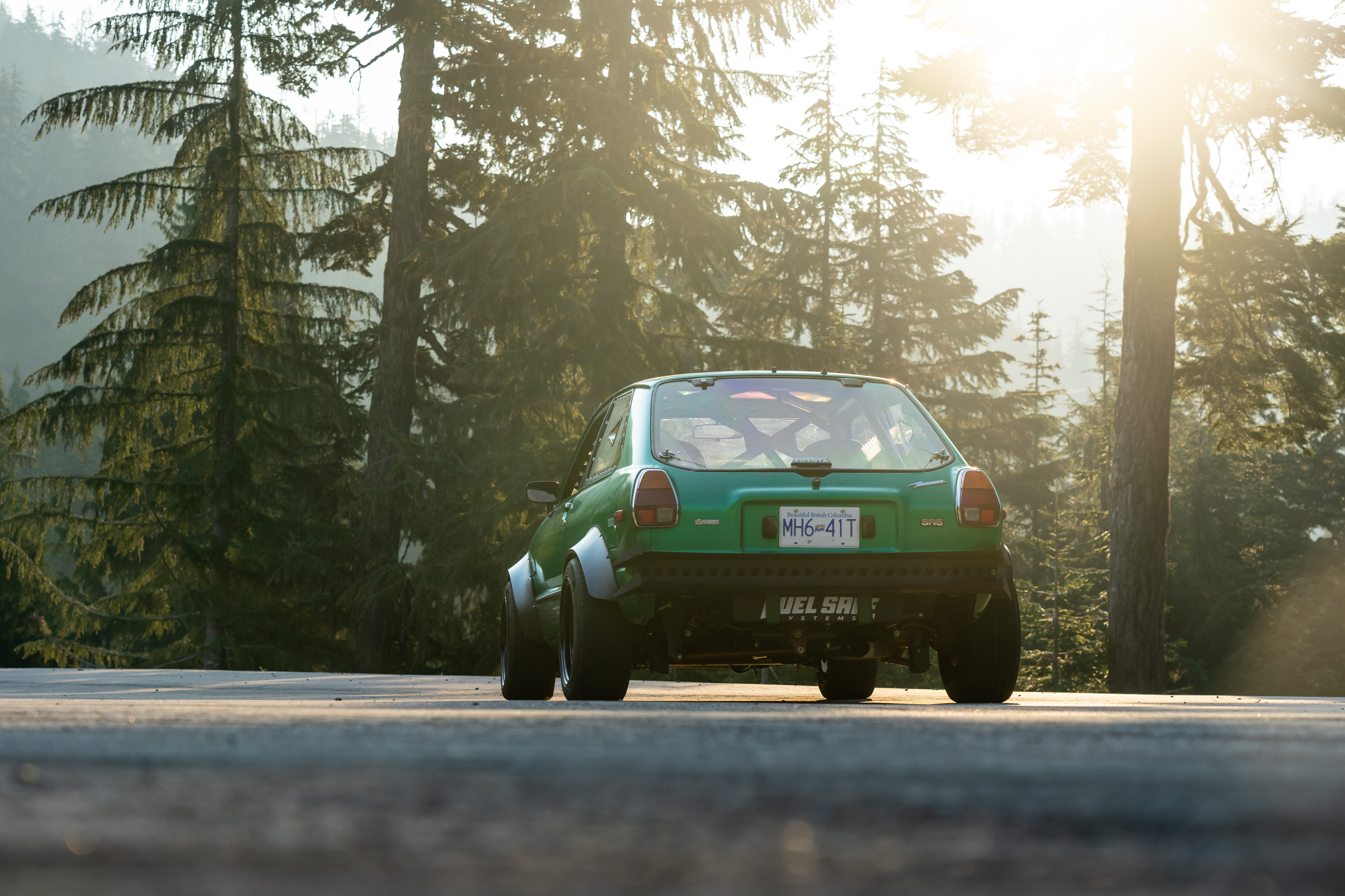 It's not that the Tercel is entirely unloved – there is a small following for the car in South America – but not enough love for anyone to radically modify one to rear-wheel drive. Vintage Japanese iron isn't rare in British Columbia, where Vawter and I live; there are about a dozen modified first-generation Civics roaming around, plenty of Datsun 510s, even one of the competition-spec Toyota Corolla TE27s from the old Westwood racing circuit. But you hardly ever see an early Tercel, let alone one with a roll cage, fender flares, and a literal golf-ball shifter and handbrake.
