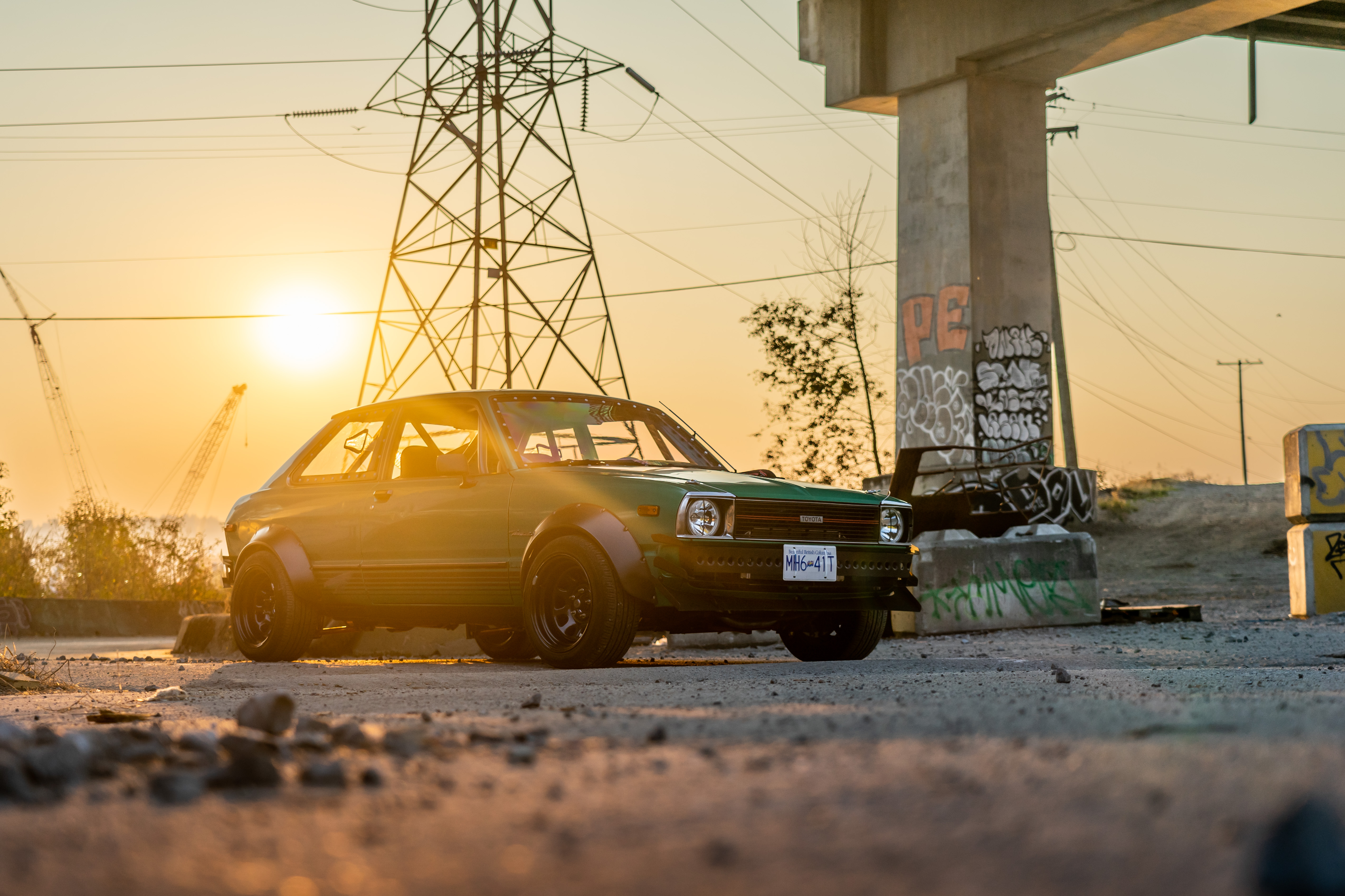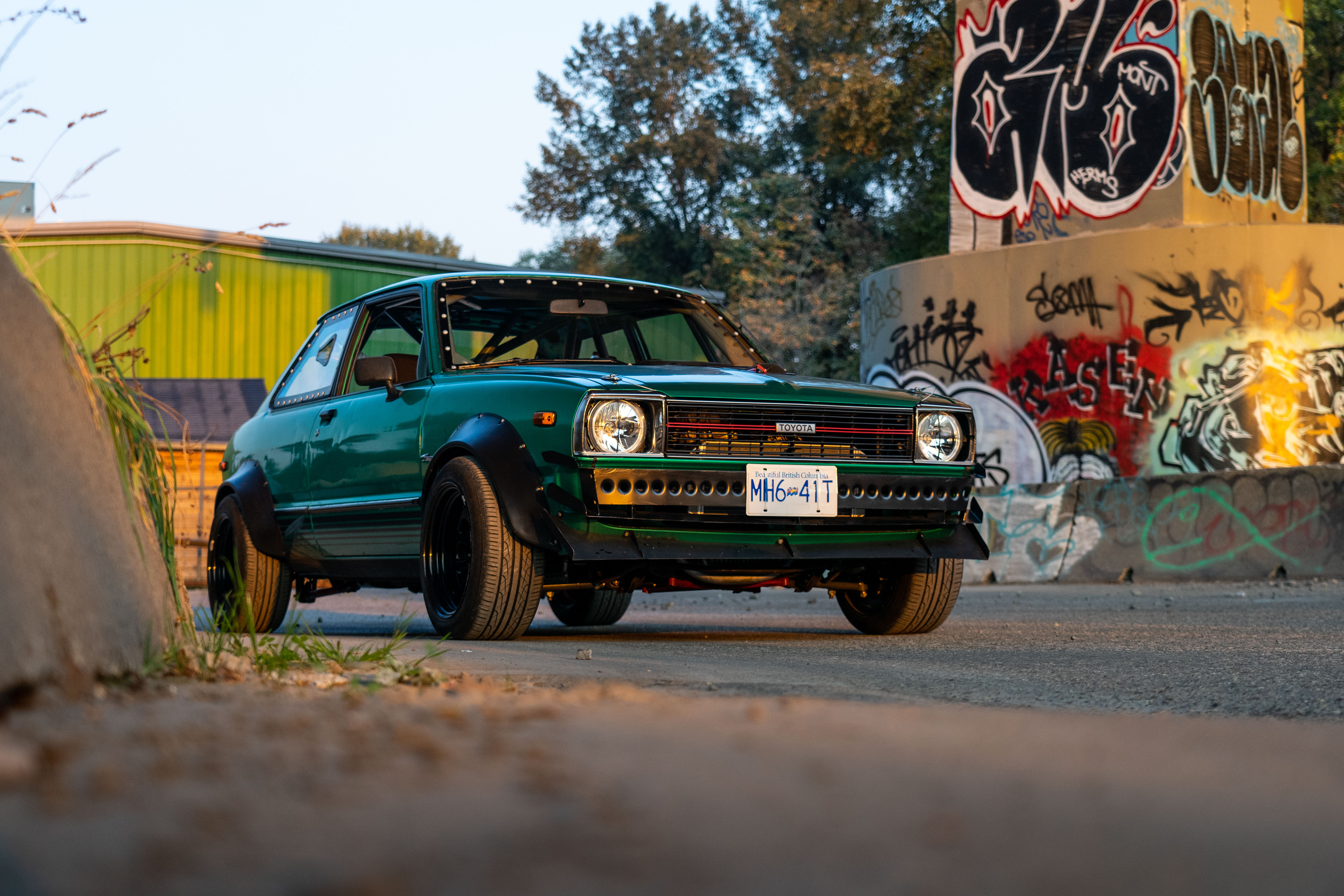 You always hope a car with a bit of its engine sticking out of the hood will produce Motörhead live show-levels of fury when it fires up. This Toyota Tercel does not disappoint. It snaps and barks, hunkered bow-legged on its wide wheels and bolt-on flares. It's the unlikeliest mongrel: a 1980 Toyota Tercel converted to rear-wheel drive with triple-flicks, a roll-cage, and an engine that goes to 9000 rpm.