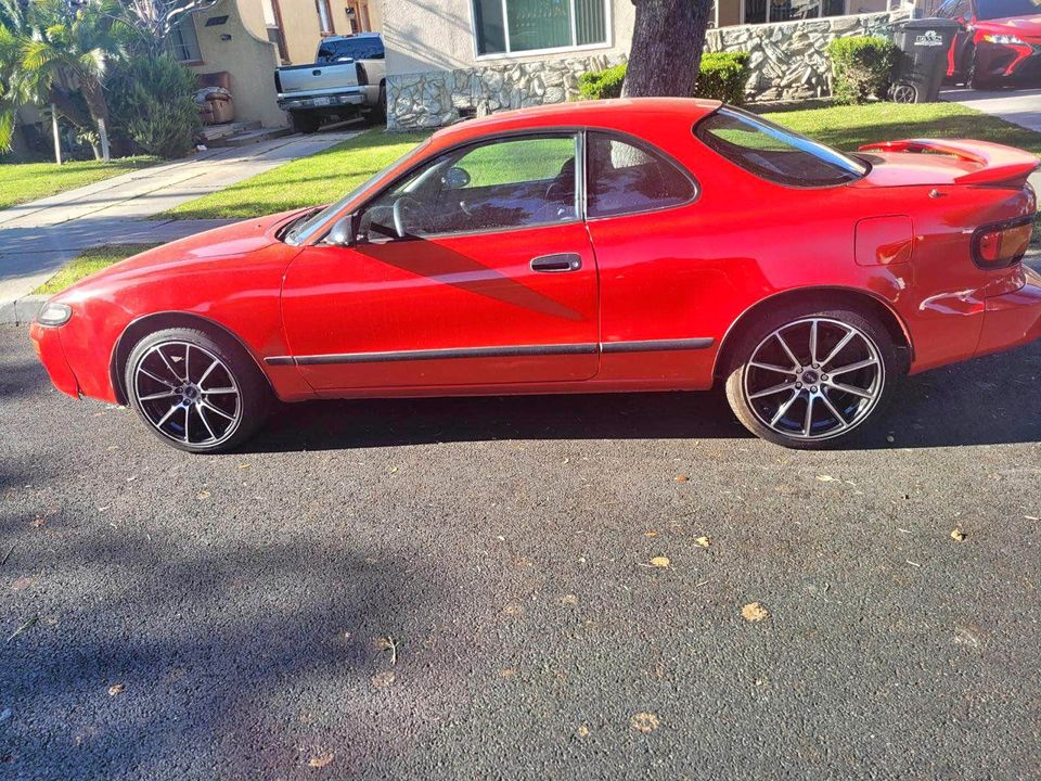 Come with me on a little adventure. First, just look at this photo of this Celica. Look at the dust on the windows, the odd ill-fitting front bumper, the weird wheels. Got that all? Now pull up the ad.