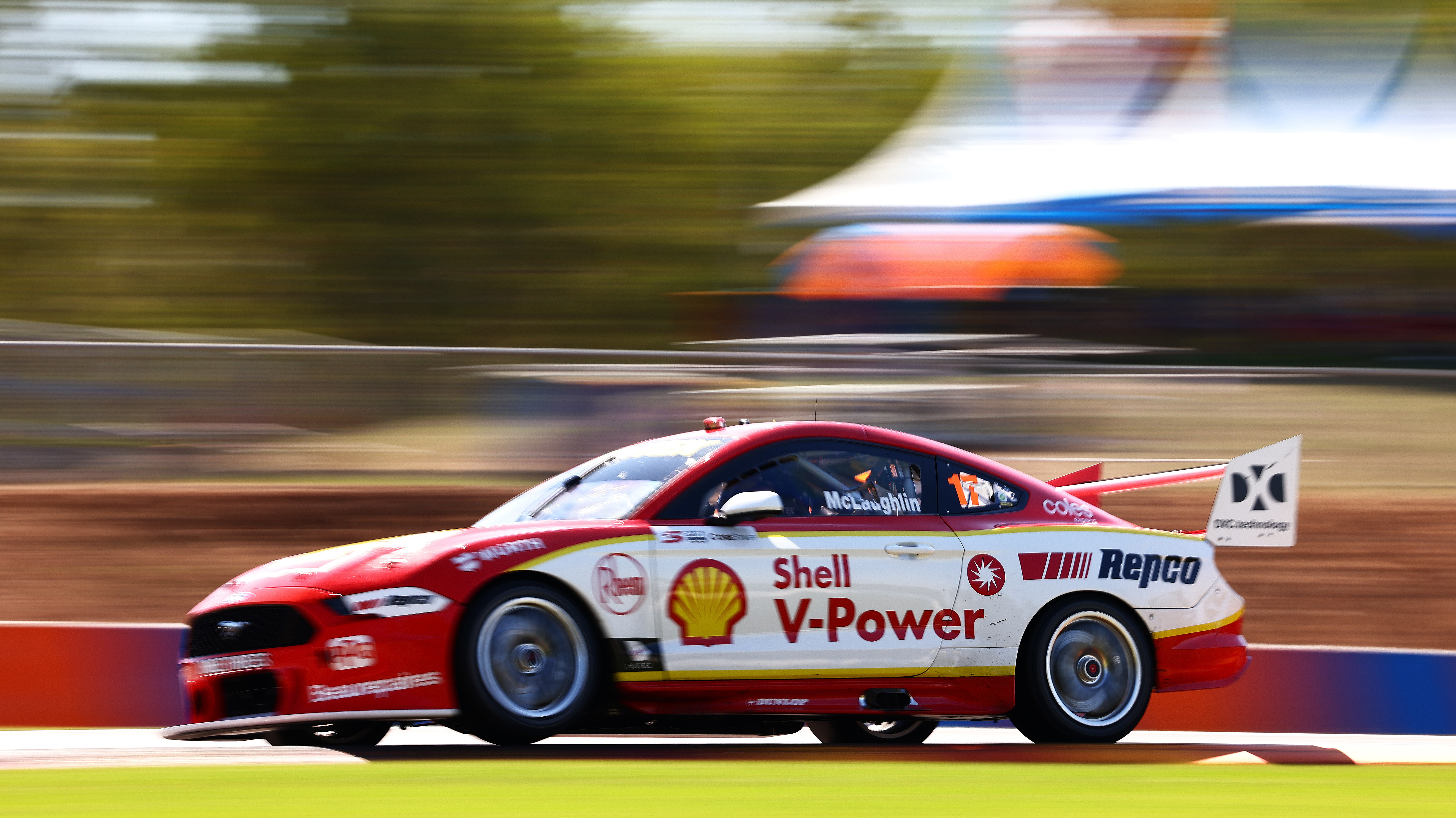 "The car is sensational," McLaughlin said after the event."I got a pretty good start. As always it's real hard racing with Shane [van Ginsbergen]. But then our car just hooked up and took off."