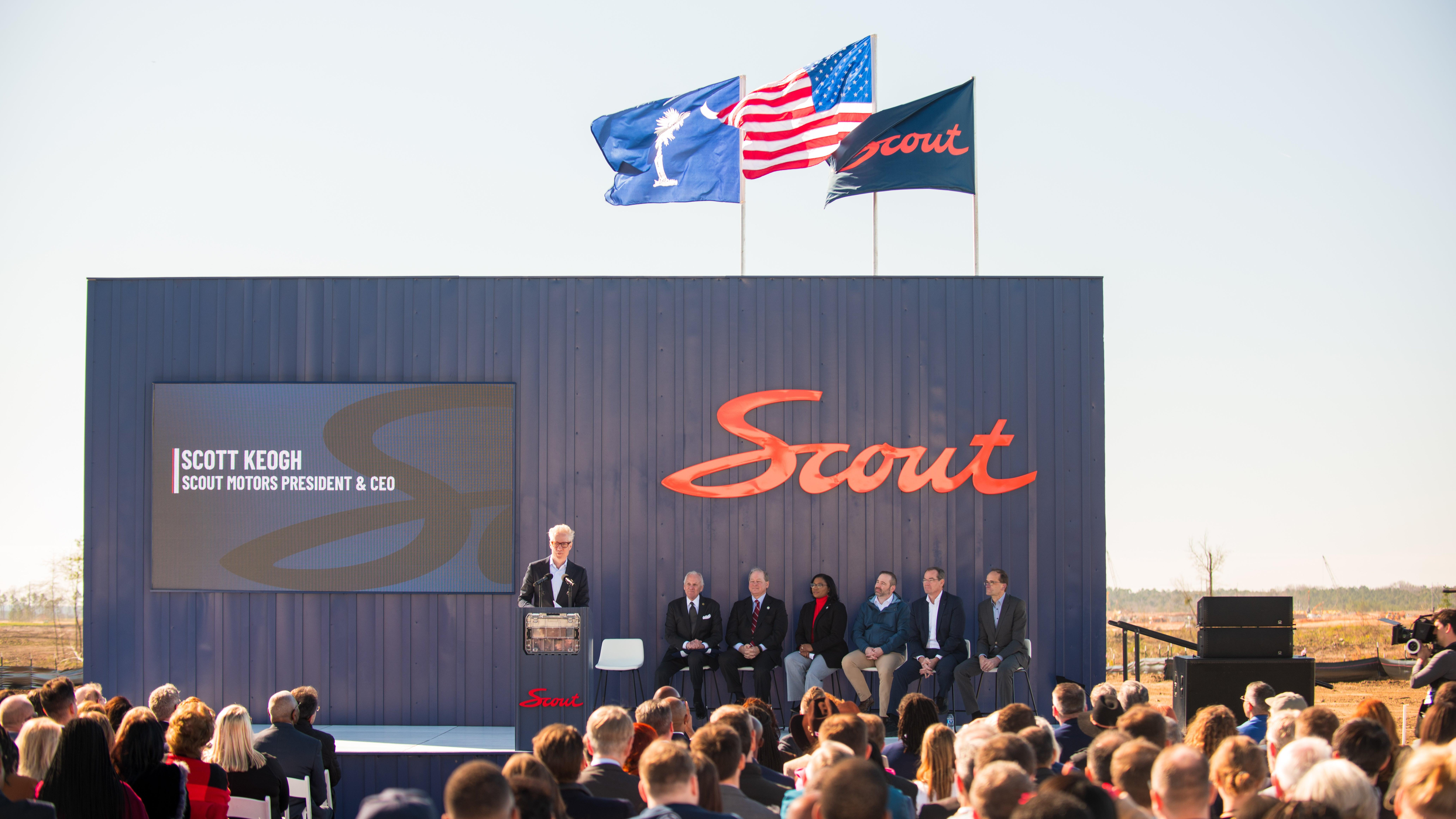 Volkswagen Group made huge waves a few years ago when it announced the revival of the venerated Scout name for a new fully electric truck and SUV that would be built in America. Yesterday I traveled to Blythwood, South Carolina, to witness the groundbreaking of Scout's new factory, which will be built on a 1,110-acre plot of land and begin production in 2026. After the ceremony, our group of journalists got to sit down at a roundtable with Scout Motors CEO Scott Keogh and head of production Dr. Jan Spies to learn more about the new Scouts, the facility and the company's philosophy as a whole.