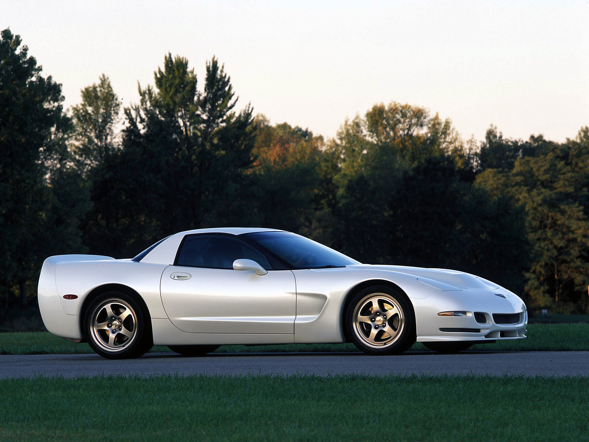 The Corvette Z06 "White Shark" Concept was a tribute to another Chevy concept car from the 1960s, the Mako Shark Corvette. While that concept was all black, Chevy went with white for this modern reinterpretation. The exterior was painted in Shark Sand tri-stage pearl paint, a unique front facia with chin spoiler, air extracting hood, nickel plated five-spoke alloy wheels and a European tail light package. Inside there was aluminum pedals and black/Klein Karoo ostrich/cowhide leather trim interior.