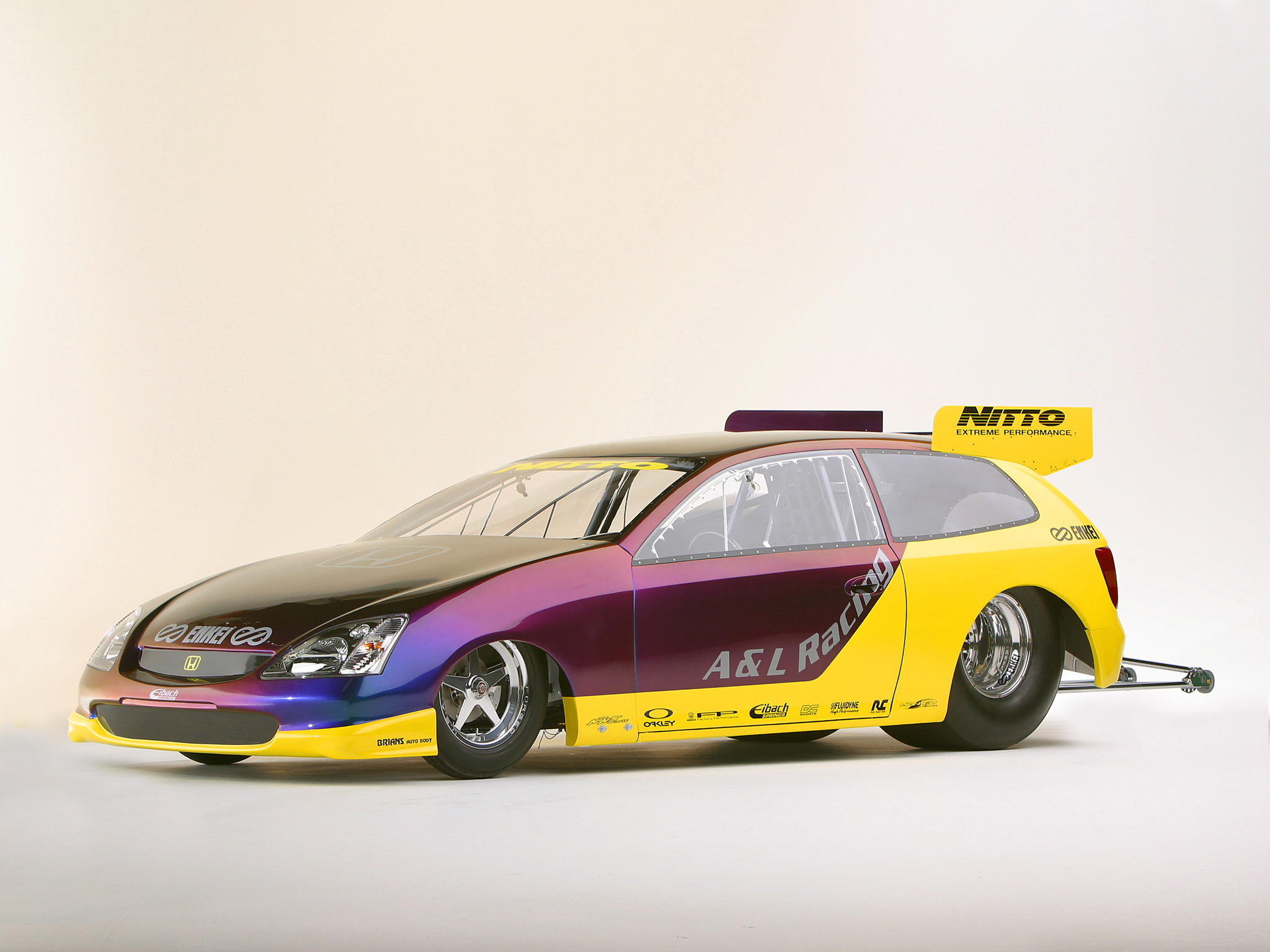 Pro drag racer Adam Saruwatari used SEMA 2002 to show off his new Civic Si drag racer. Designed to compete in the NHRA's Pro-Comp class, it featured a tube chassis and rear wheel drive. The best bits were underneath of course.