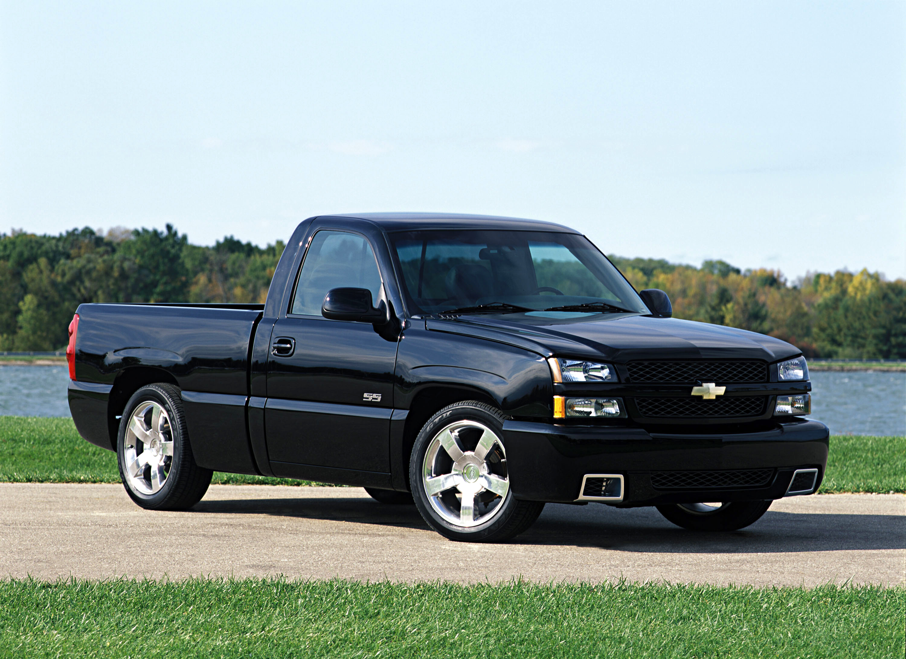 Chevy showed the production version of the Silverado SS at SEMA in 2002. It was an all new model for 2003. It was cool and pretty quick with its 345 hp V8 and all wheel drive. But buyers could only get it in an extended cab configuration. So Chevy brought a concept to SMEA that was what the Silverado SS should have been from the beginning, a regular cab SS