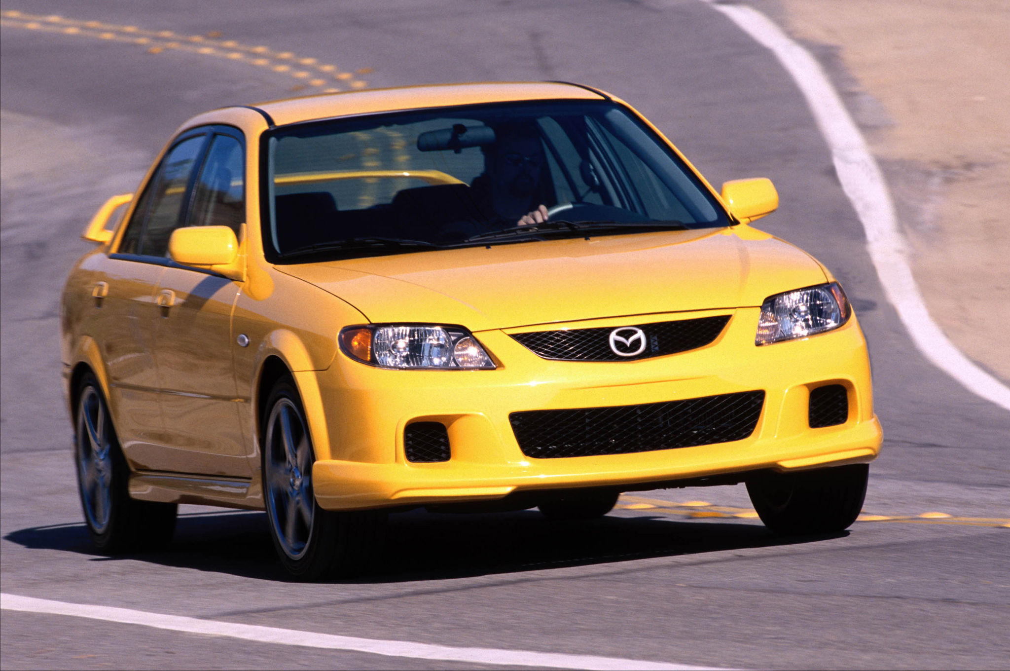 Inside there was new Mazdaspeed branded shift knob, floor mats and pedals along with yellow accented stitching throughout the interior. Only 4,500 Mazdaspeed Protégés were ever made with just over half (2,750) being the updated mid-year model.