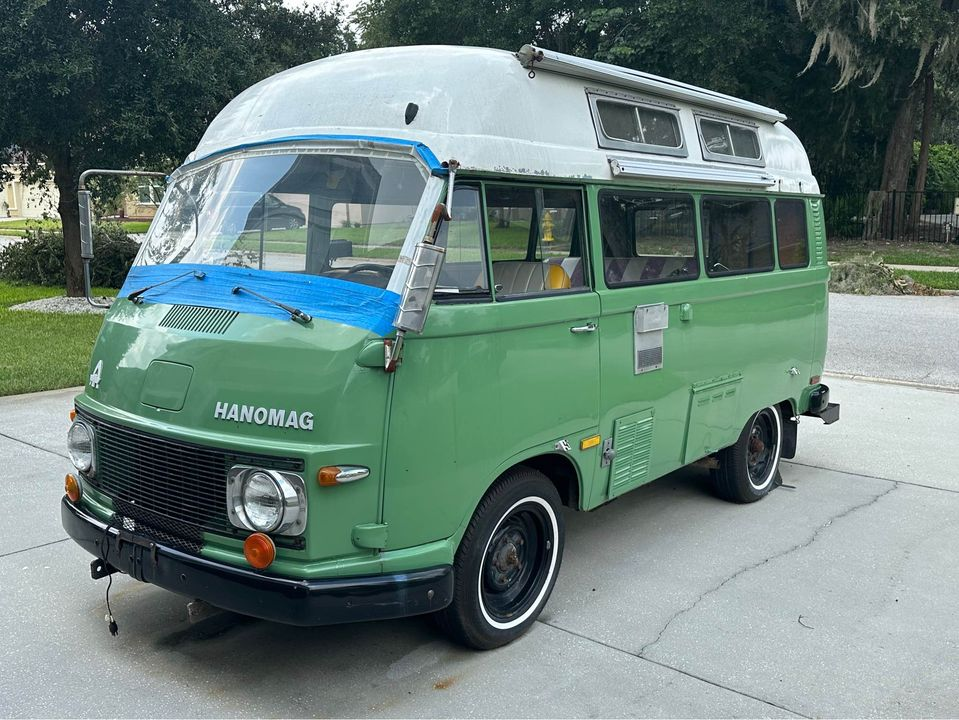 This VW bus-looking camper isn't exactly a Mercedes, but it's not not one either. It's made by a company called Hanomag, but these vans were also sold under the Mercedes brand during a brief overlap period. That means they're old, quirky, rare, diesel-powered campers — what's more Instagram-worthy than that?
