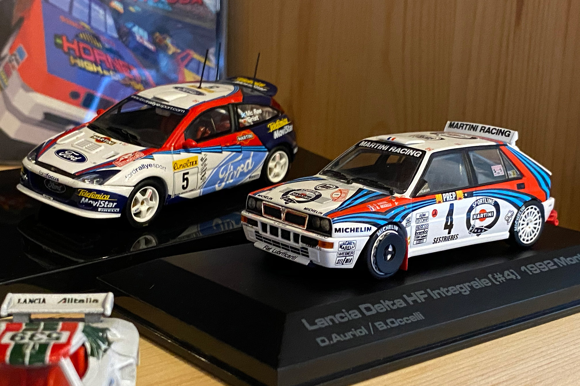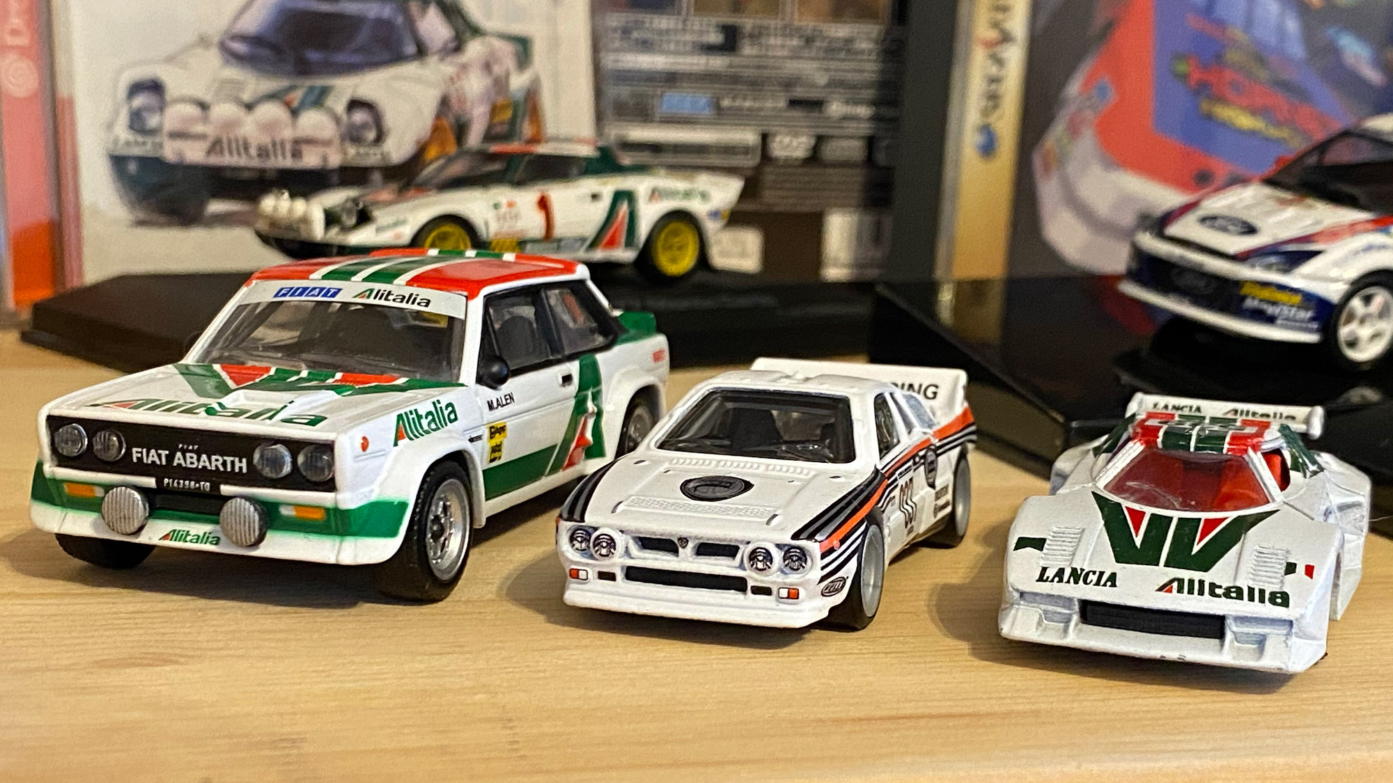 On that note, I'll highlight some of the standouts in my modest collection. Rally cars are certainly a Focus (heh), and the highest-quality models I have are from HPI Racing, including the Lancia Delta HF Integrale and Stratos. Other Alitalia and Martini-livery miniatures seen in the top photo include a Bburago Fiat 141 Abarth that is actually really nice, considering it's more toy than model, as well as Hot Wheels' recently released 037 Rally and a very, very old Tomica 1/64-scale Stratos Turbo given to me by a friend.