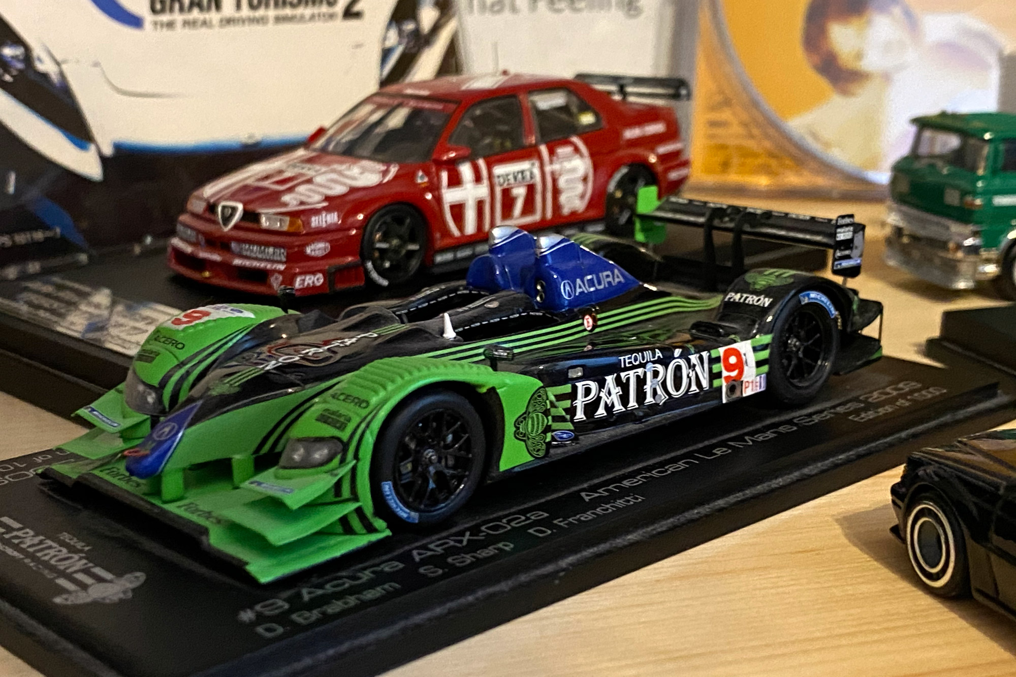 The last few 1/43-scale examples are a Patron Highcroft Acura ARX-02a from 2009 that a friend brought me from an American Le Mans Series race forever ago, as well as an Alfa 155 2.5 V6 TI DTM in the back there.