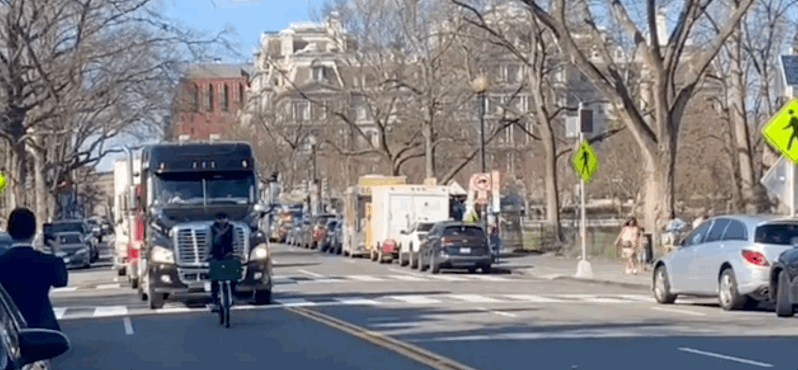 Honestly, the People's Convoy could use all the support it could get. While annoying, it hasn't really disrupted life in the nation's capital quite to the extent that the failed Freedom Convoy did for folks in Ottawa. The cohesion of the convoy gets lost in the intense everyday traffic of Washington D.C., and the truckers are actually camped over an hour and a half away in Maryland. Can't really blare your horns all night, trash important monuments, harass normal citizens going about their daily lives or fill residential streets with smog from miles away.