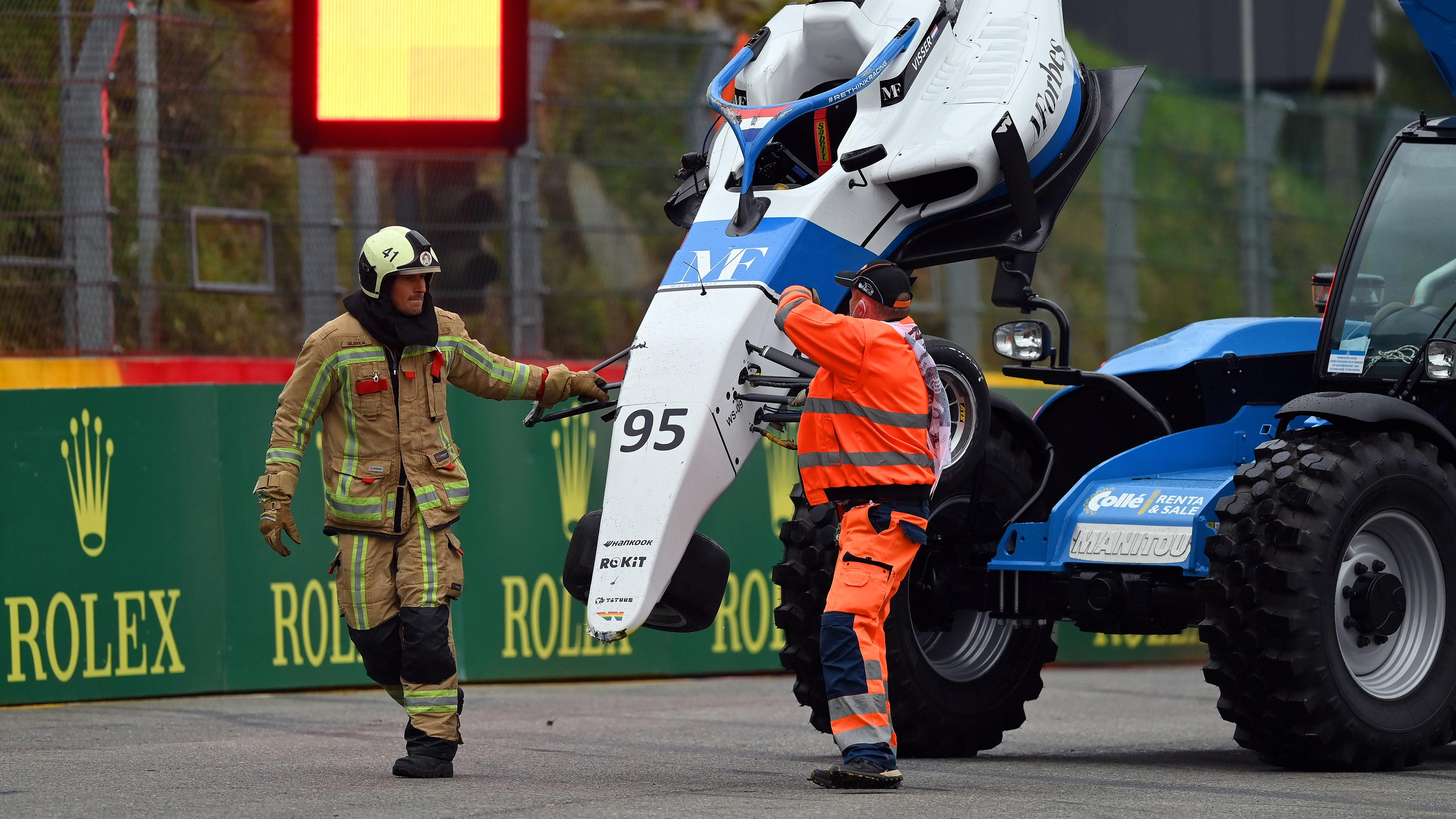 Friday qualifying for Saturday's W Series race at Spa-Francorchamps was momentarily red-flagged after a serious crash at Raidillon, one of the fastest corners on the circuit. Six drivers — Fabienne Wohlwend, Beitske Visser, Sarah Moore, Abbie Eaton, Ayla Agren and Belen Garcia — lost control independently while negotiating the high-speed right-hander, and were collected near the wall inside the apex of the subsequent left. Another car, seemingly that of Academy driver Nerea Marti, could be seen spinning wide of the wreck toward the runoff area on the opposite side of the track.
