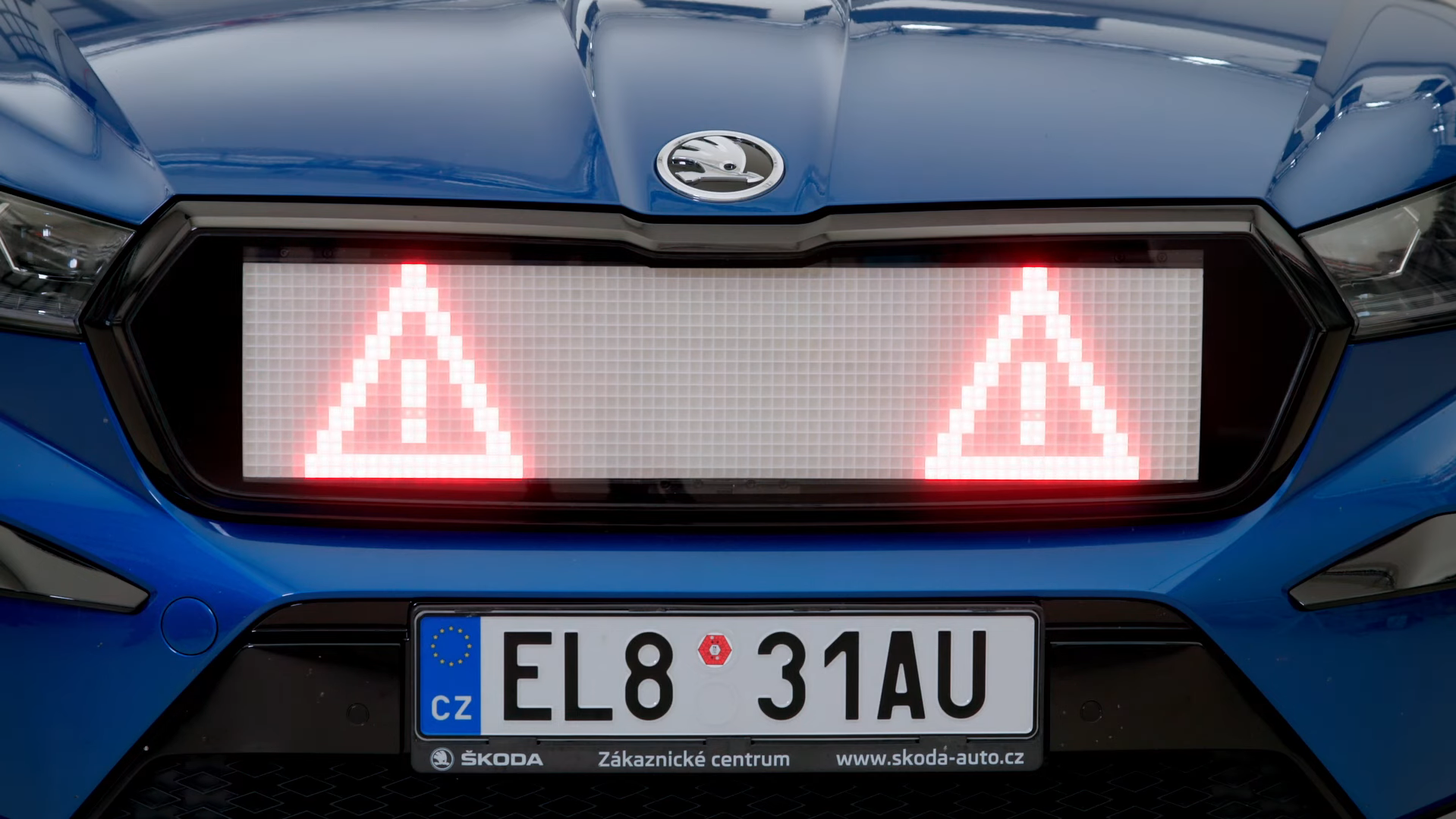 Škoda is working with AV startups, universities, and other research institutions in Europe to develop technology for the sake of pedestrian safety, and some of it could finally make use of the big, ugly grilles on so many modern cars. Rather than subject us to useless grilles on its EVs, Škoda is experimenting with color-coded warnings that show when it's safe or dangerous to use the crosswalk.