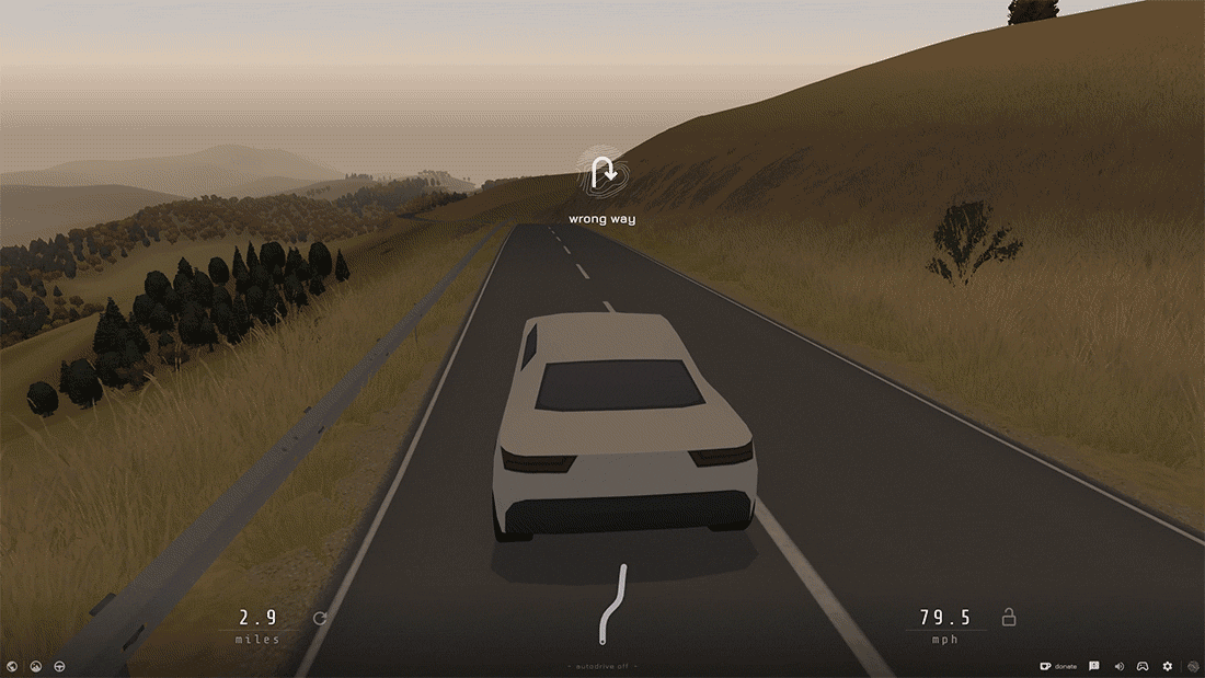 A controller isn't necessary, either. Slow Roads can be experienced with your keyboard and mouse, if that's all you have. Hell — if you'd rather enjoy the sights, you can leave the driving to the computer and sit back and relax.