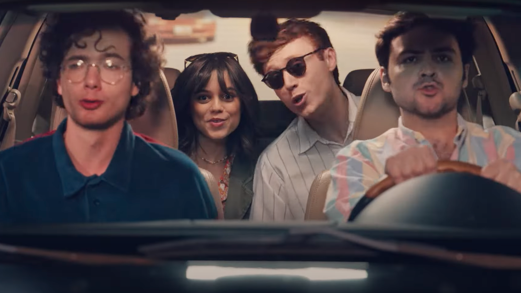 Anyway, it starts out with the three members of "Please Don't Destroy" and last week's SNL host, Jenna Ortega, in a car that I think is an early 2000s Subaru Forester. That doesn't really matter, I guess. They're singing and having a grand old time – as you do at the beginning of a road trip — but things quickly go awry.