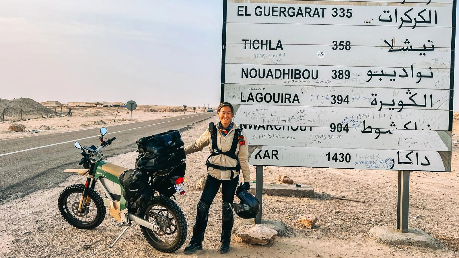 Gottwald hit the road on October 14, 2022, riding to the southern tip of Spain where she took a ferry across the Mediterranean sea to Morocco. She then tackled the sand of Morocco, before heading into Mauritania and Senegal.